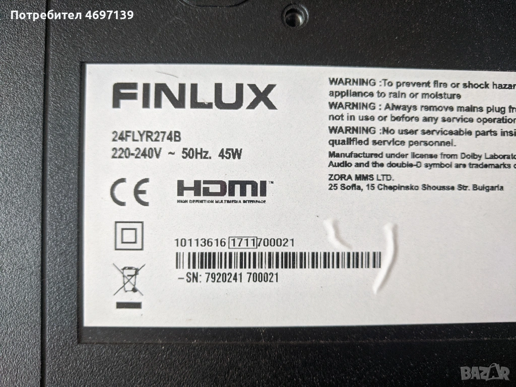 FINLUX 24LYR274B-17MB140-17IPS61-5 → Обява 53090271