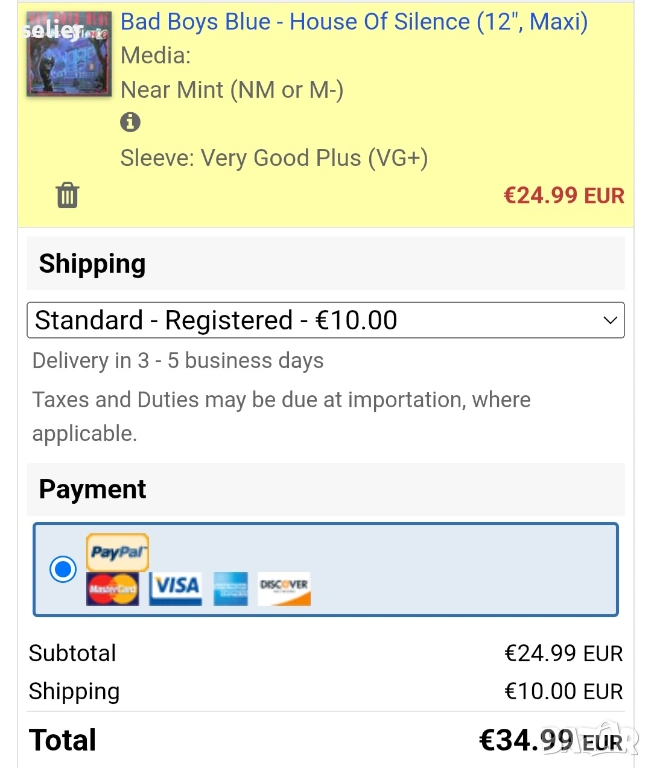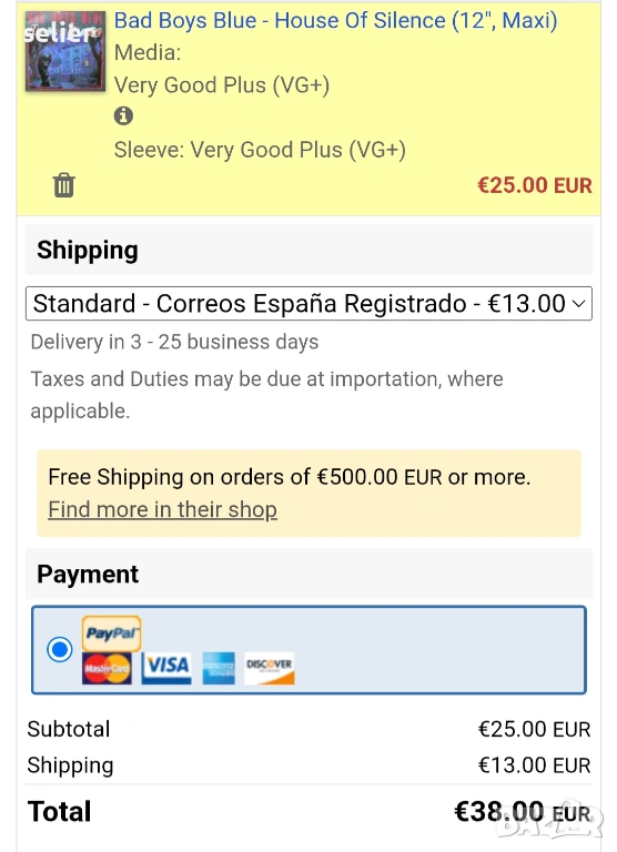Състояние на винила:VG+