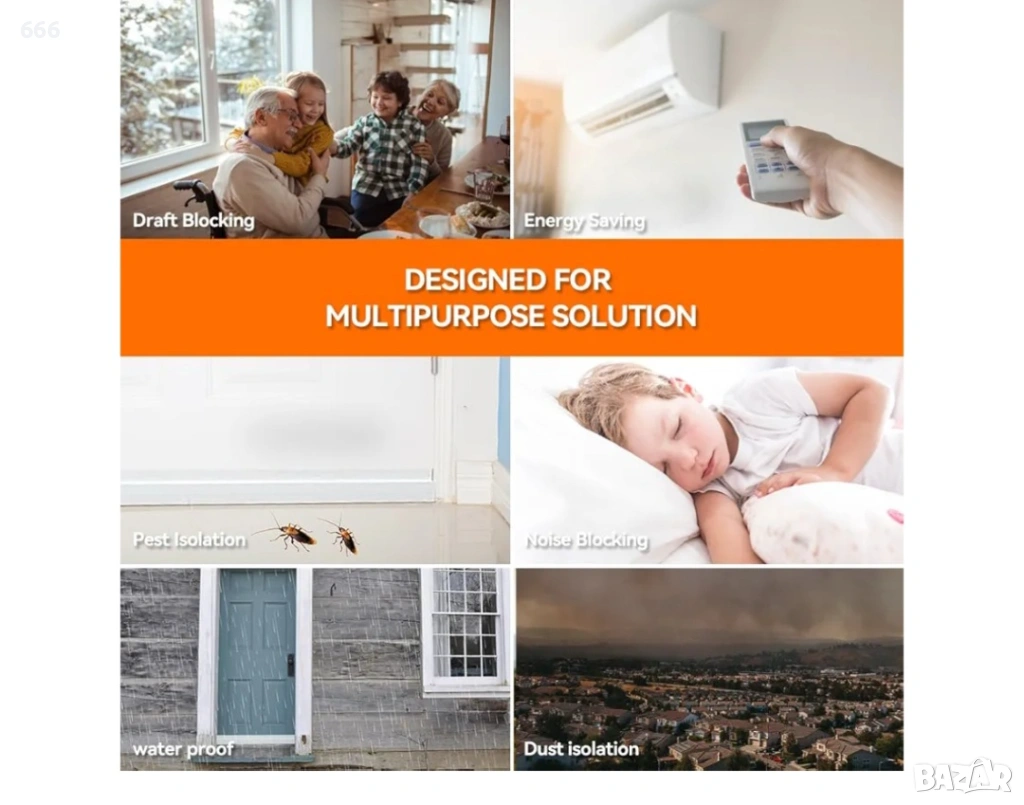 Многофункционалност. Уплътнителят за въздух под вратата може да предпазва от проникване на студен и топъл въздух през зимата и лятото, което прави отоплението и охлаждането на дома или офиса по-ефективно. Той има и множество функции, като водоустойчивост, защита от насекоми, защита от прах, топлоизолация и др. Поддържайте стаята си тиха, чиста и с правилната температура.