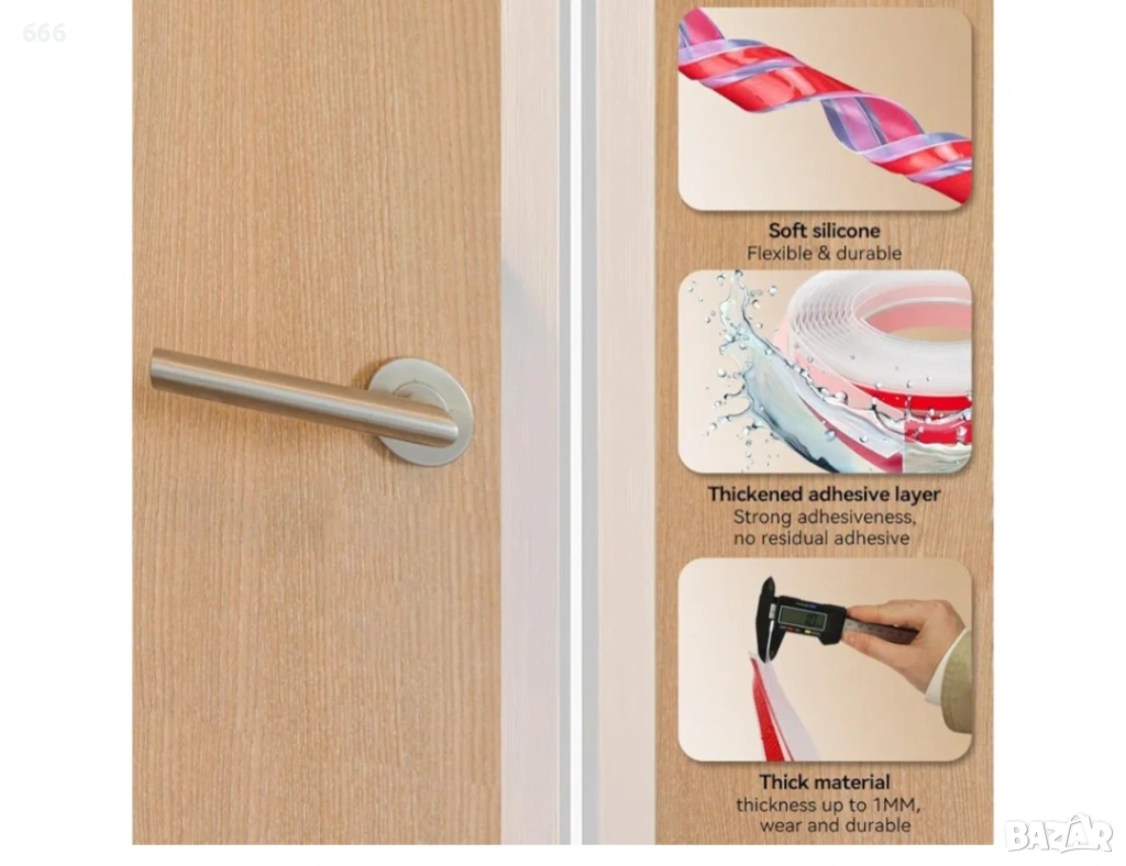 Висококачествени силиконови материали. Уплътнителната лента за врати е изработена от нетоксичен материал, като е с отлична гъвкавост, висока еластичност и изключителна издръжливост, безопасна за деца и домашни любимци. Прозрачният дизайн е подходящ за повечето стилове на дома, без да нарушава красотата.