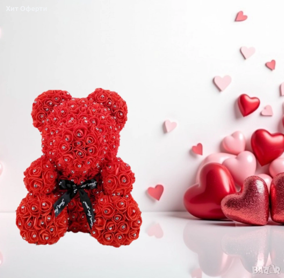 Луксозно мече от рози покрито с блестящи камъчета в елегантна подаръчна кутия → Обява 53090582
