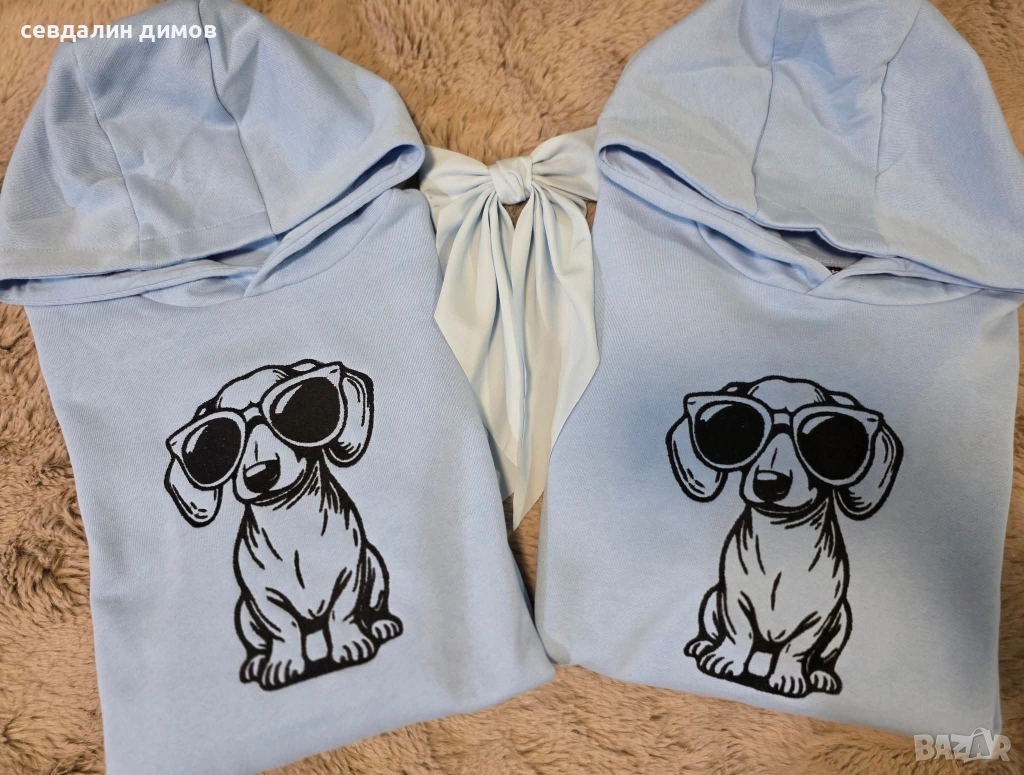 Стилен и забавен суитшърт в светлосин цвят, с висококачествена машинна бродерия. Подходящи за двойки, приятели или като оригинален подарък.