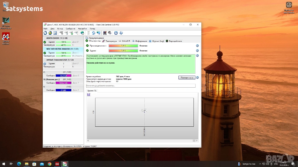 1.Western Digital Caviar Blue 1TB WD10EZEX PC500 SATA 6.0Gb/s (Windows 10 Education 64-bit) 100% Здраве