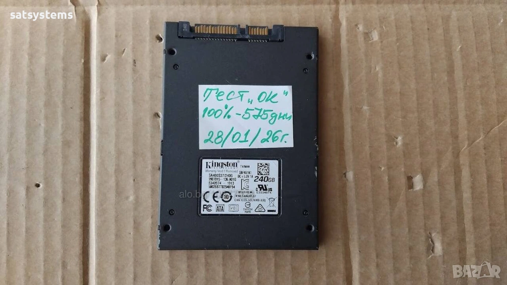 3.SSD Kingston SA400S37/240G 240GB SATA 6.0Gb/s 100% Здраве