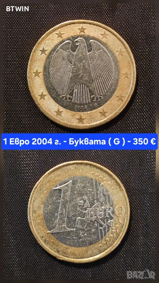 1 евро 2002 г. - Буквите (D) (A) (F) / 1 евро 2004 г - Буквата (G) ! → Обява 53091009