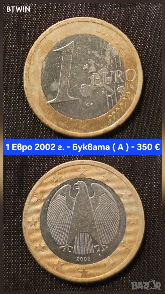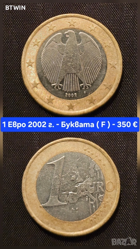 1 евро 2002 г. - Буквите (D) (A) (F) / 1 евро 2004 г - Буквата (G) !