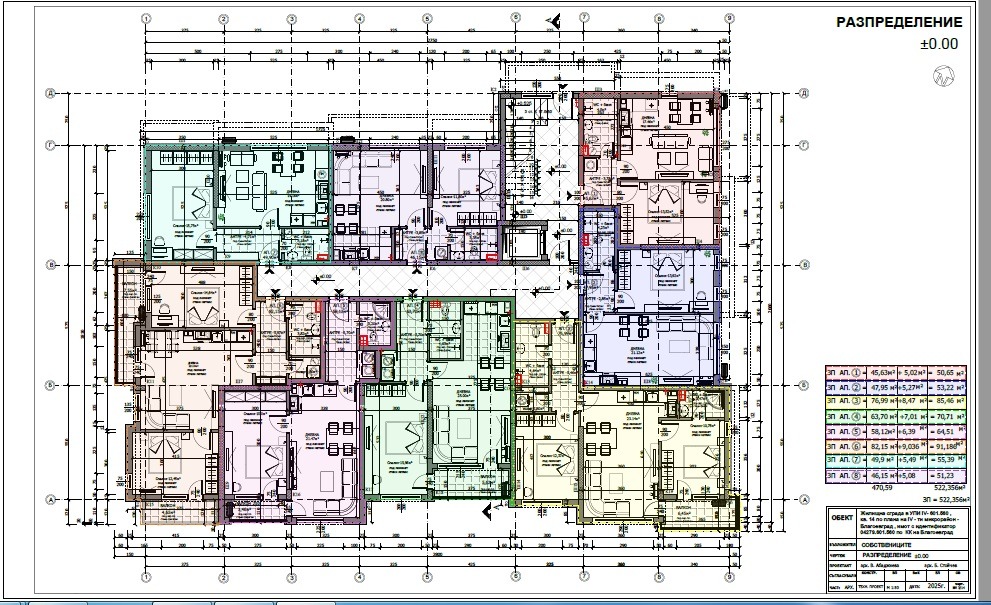 Апартаментите са с площ от 50,65 м2 до 141,64 м2 с общи части. Сградата разполага с открити и закрити паркоместа. Подробно описание на предлаганите апартаменти може да видите в прикачената таблица. Предлагаме гъвкаво плащане според степента на завършеност на строителството.