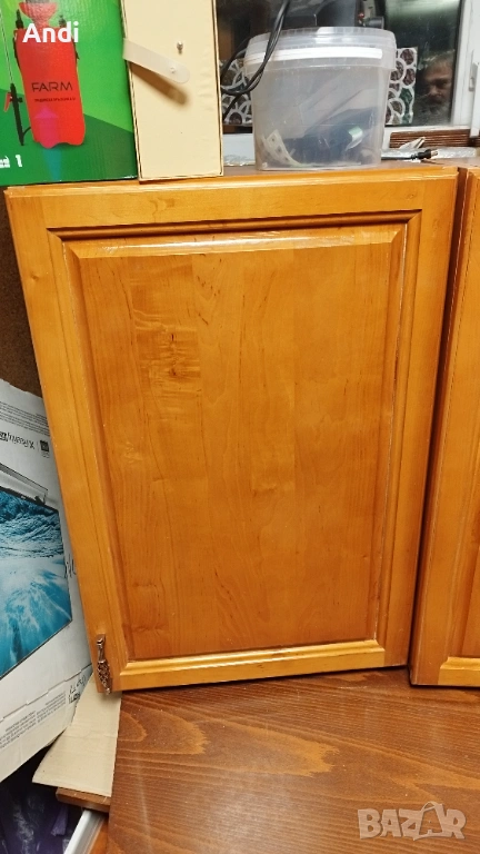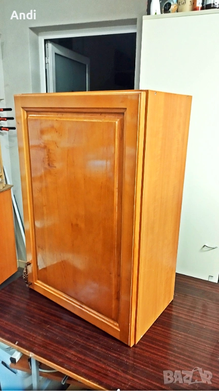 Продавам запазени Кухненски шкафове за стена 2бр - горен ред с врати с размер 80x50см и 80х54см и дълбочина 32см. Вратичките са от масив цвят череша с добре работещи панти запазен с метални држки. Корпусът е от ПДЧ цвета е червеникаво кафяв - череша. Цената е 70€ / бр За София е вазможен тканспорт + 30€.