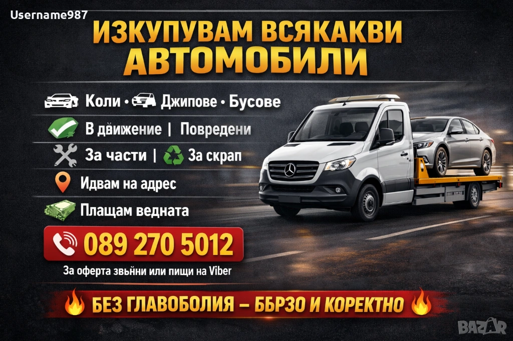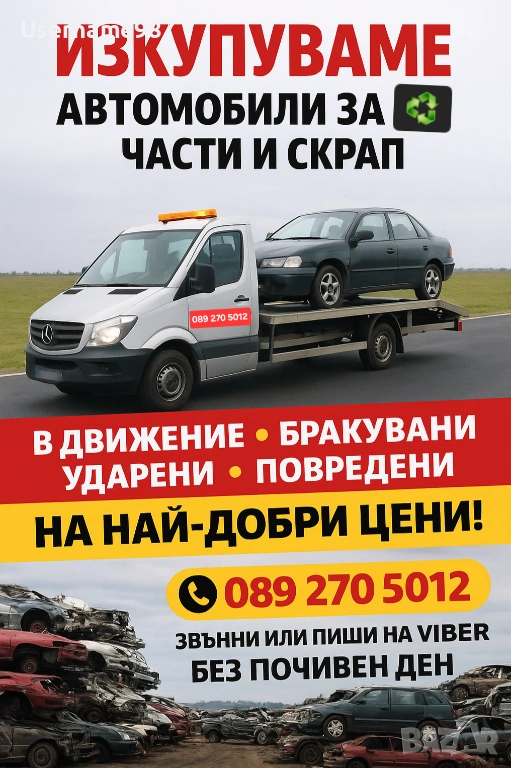 Изкупуване на Автомобили • Джипове • Бусове • Камиони - В движение или за части и скрап
