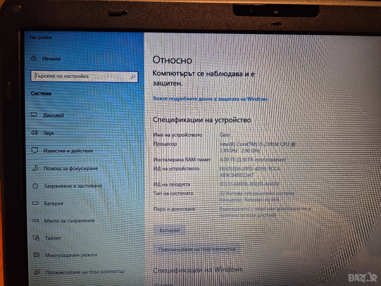 Процесор: Intel Core i3-2310M (2.10 GHz, 3MB Cache)