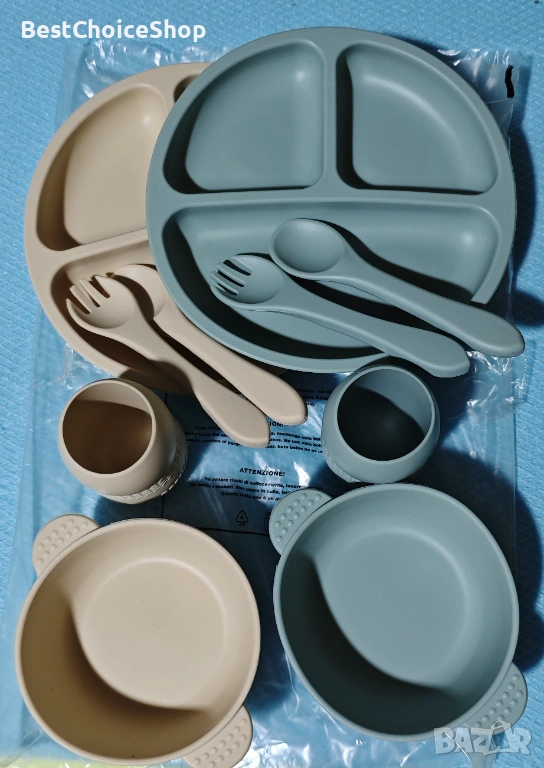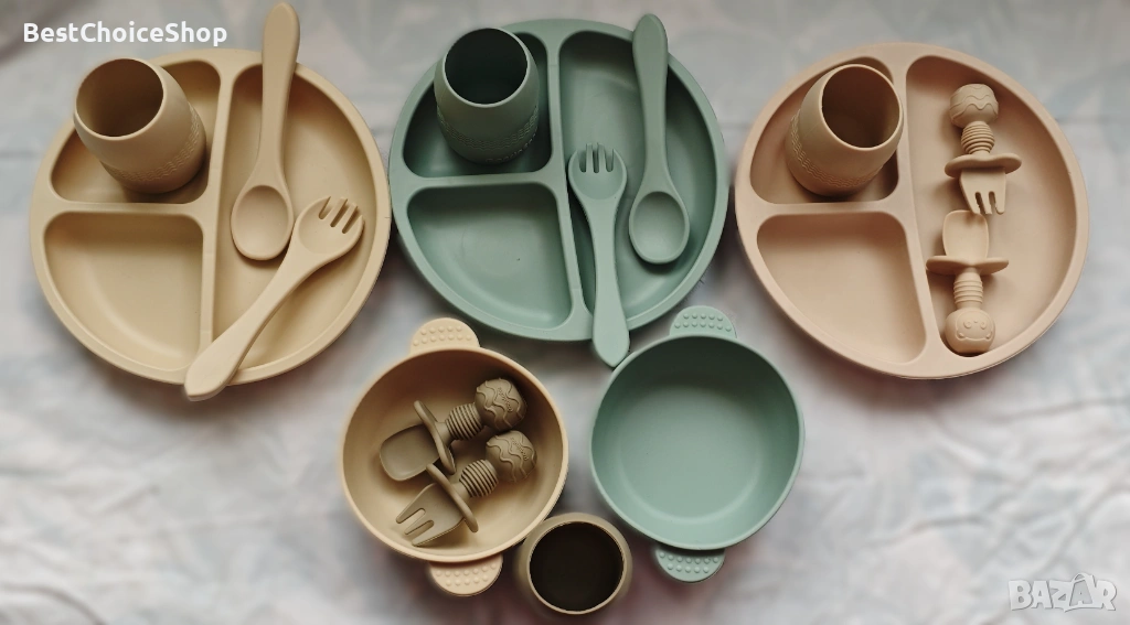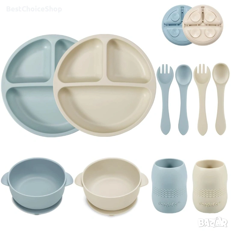 PandaEar Силиконов комплект за хранене за бебета с вендузи – 6 части → Обява 53091399