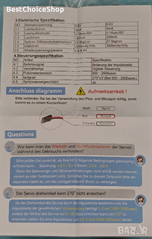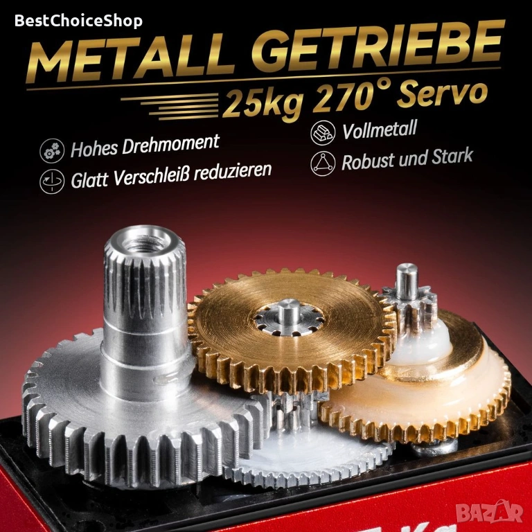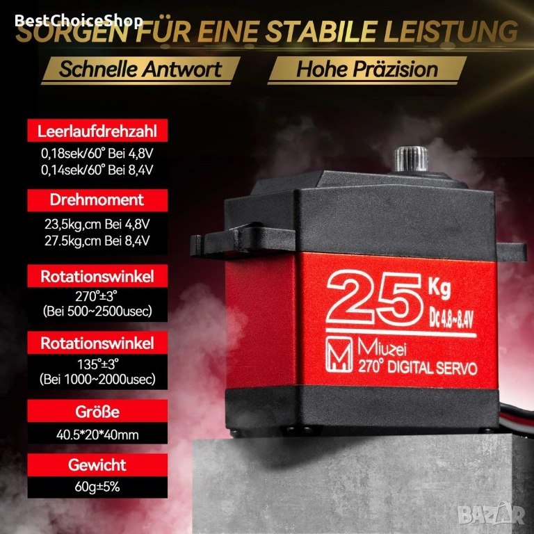 Серво мотор с висок въртящ момент: реагира бързо и максималният въртящ момент е до 27,5 кг/см при 8,4 V. Водоустойчив серво, изцяло метален серво мотор за RC кола, тих серво мотор, леко тегло, серво, работещо на 180°.