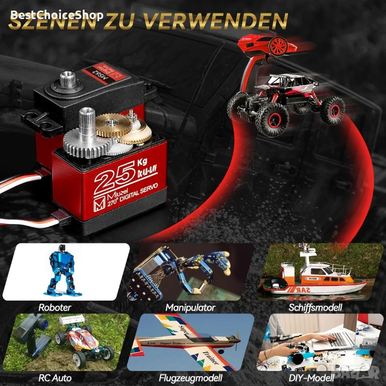 Области на приложение: серво RC, подходящо за аеродинамични лодки, RC коли, роботи, интелигентни „Направи си сам“, също така твърди крила, хеликоптери и други RC модели.