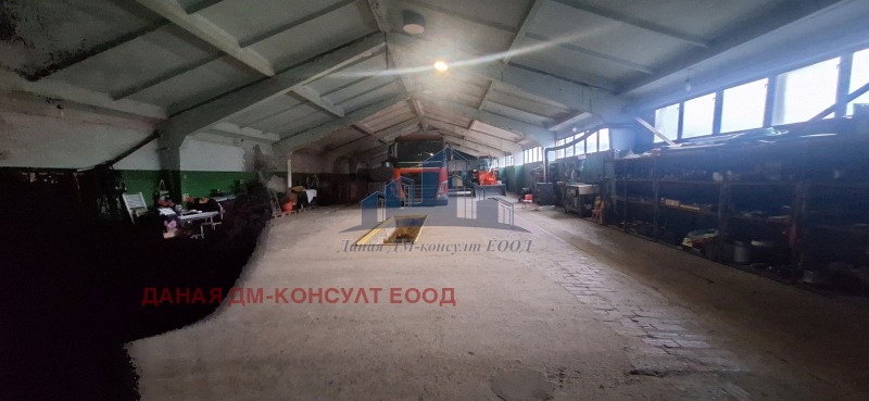 Производствено складова база с площ на терена; 4 343 кв.м. и РЗП:525кв.м. Масивна ограда от бетонни блокчета.Имотът включва , 2 сгради с масивна стоманобетонна конструкция обособени за транспортно ремонтни дейности със необходимото оборудване. Имота разполага с канал за ремонтни дейности външен и вътрешен , питейна и поливна вода , трифазен ток , канализация за промишлени цели и кладенец, сот , противопожарна система, ролетни врати.Подът е бетон , покривната конструкция също е от бетон, санитарните помещения са след основен ремонт , 2 помещения за отдих на персонала след основен ремонт обзаведени.Отопление с 2 климатика и камина на твърдо гориво.В момента базата е функционираща и се предлага със лиценз за транспортна дейност в едно със цялото оборудване, което включва: машини , съоръжения и транспортни средства , в отлично състояние.Намира се на 10км. от града в близост до главен път. Имотът е подходящ за всякакъв вид производствена или складова дейност .
