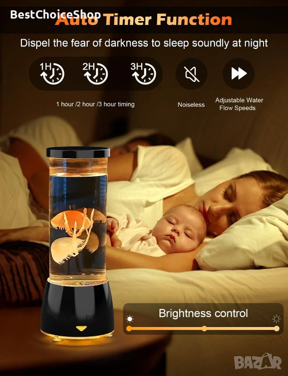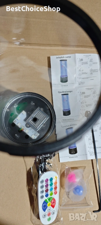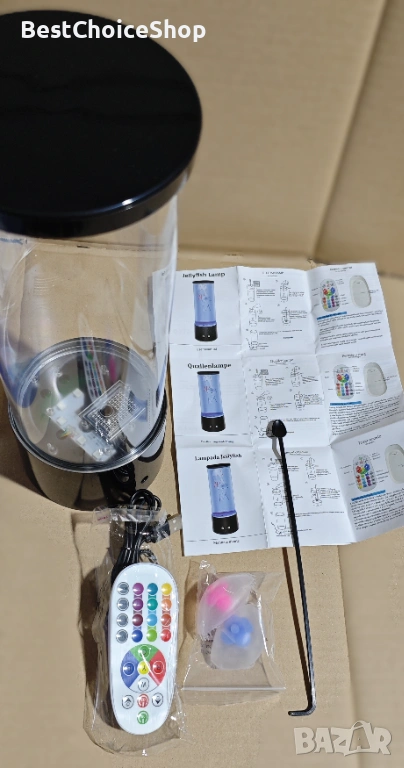 Настолна LED нощна лампа аквариум с медузи. С 17 различни цвята LED светлини, с дистанционно управление, USB зареждане. Интересна и атрактивна лампа, подходяща и за подарък!