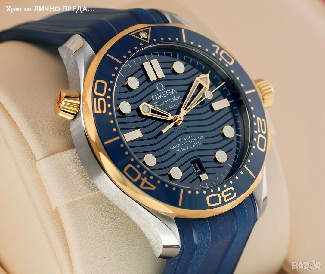 Януари промоция! Мъжки механичен часовник Omega Seamaster Diver 300M 42MM Blue Dial Rubber Strap