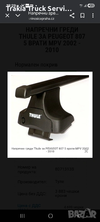 Thule Багажник релси Rapid 754 Citroen C8 Peugeot 807 FIAT Ulysse Lancia Phedra → Обява 53092289
