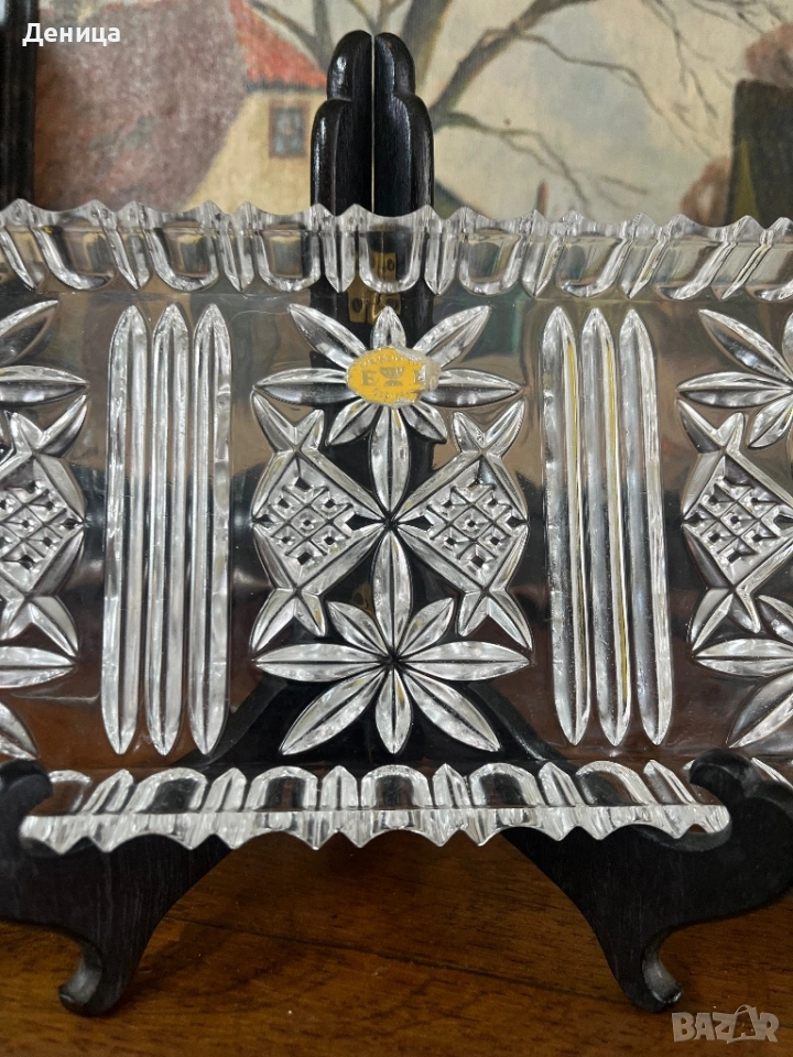 Красиво кристално плато/поднос Западна Германия -оловен пресован кристал Размери-34/13.5/2 см → Обява 53092406