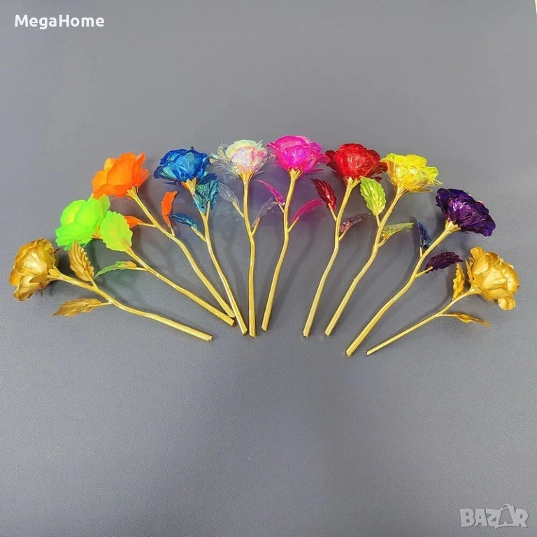 Дизайнът е изчистен, но впечатляващ. Прозрачната индивидуална кутия подчертава розата и я предпазва, а цветният фон засилва визуалния ефект. Продуктът се предлага в пет ярки и отличаващи се цвята, всеки със собствено настроение: Син – спокоен и стилен избор, Лилав – елегантност и оригиналност, Оранжев – енергия и позитивно настроение, Зелен – свежест и нестандартен акцент, Жълт – радост, топлина и слънчево излъчване. Компактният размер позволява розата да бъде поставена на бюро, рафт или витрина като постоянен декоративен акцент.