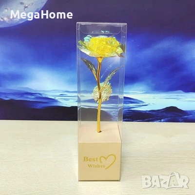 Всяка роза е изработена като декоративно изкуствено цвете, което не изисква поддръжка и запазва формата и цвета си във времето. Акцентът е златистото стъбло и листа, които придават елегантност и усещане за нещо по-специално от стандартна декорация. За разлика от живите цветя, тук няма вода, няма грижа и няма срок на красота. Надписът „Best Wishes“ прави продукта универсален подарък – подходящ за рожден ден, имен ден, благодарност, поздрав или просто мил жест.
