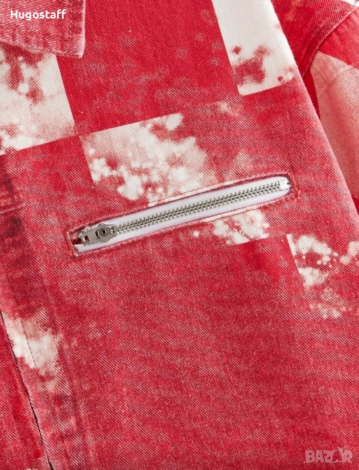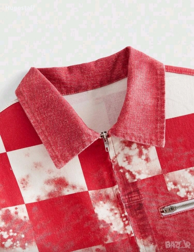 Ново мъжко дънково яке червено шах деним памук ХЛ → Обява 53092651