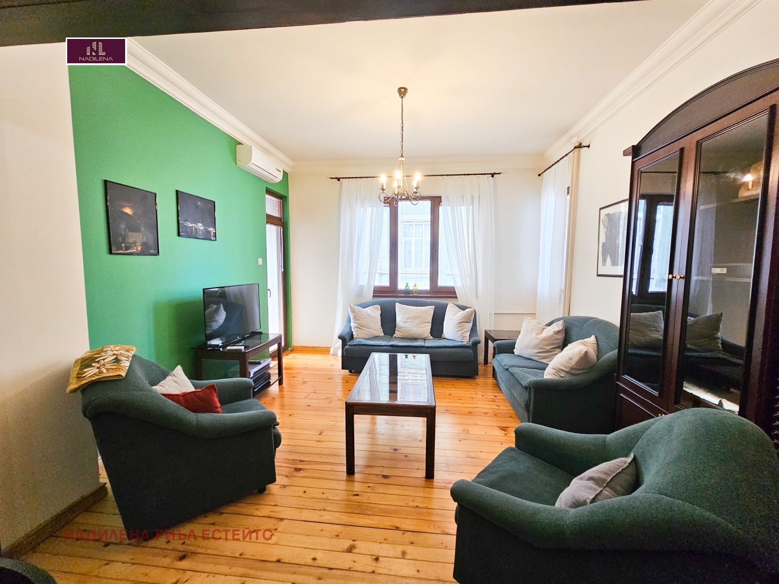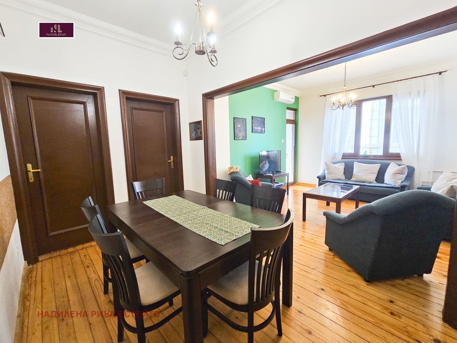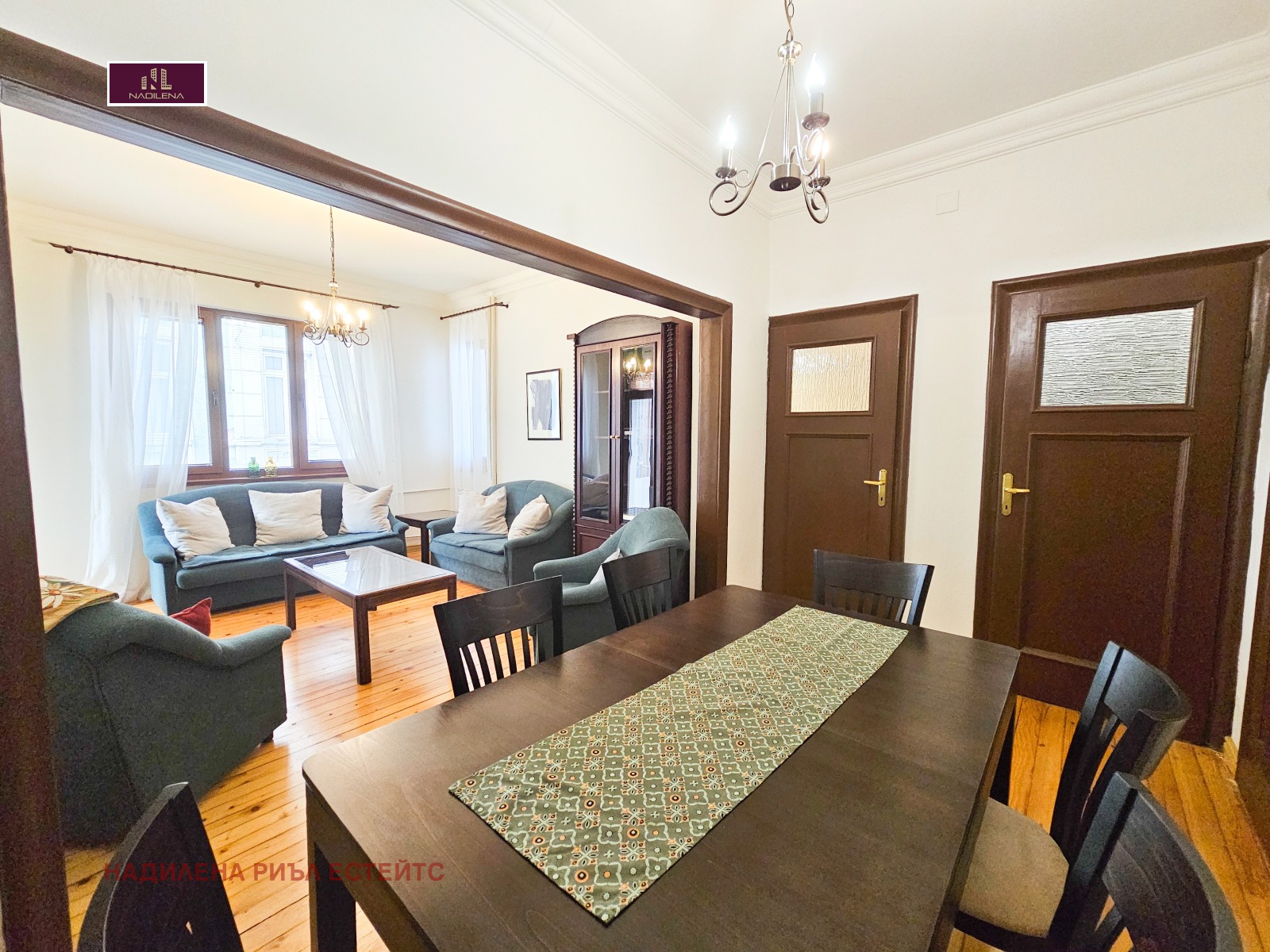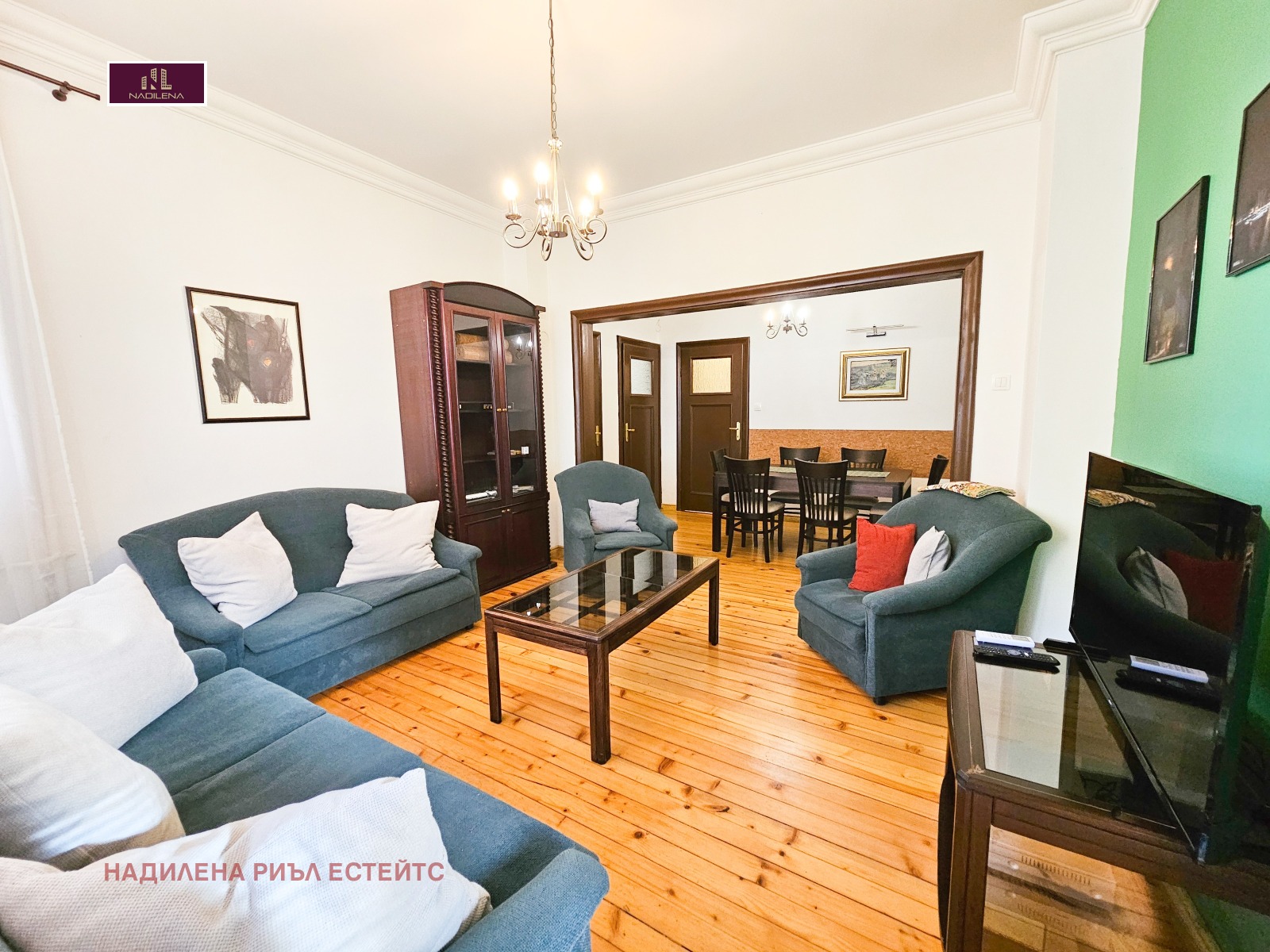 Надилена риъл естейтс предлага под наем прекрасен 4-стаен апартамент със застроена площ от 120кв.м., ет.2/от 5, отопление-ТЕЦ, без асансьор, с два входа, СОТ.
