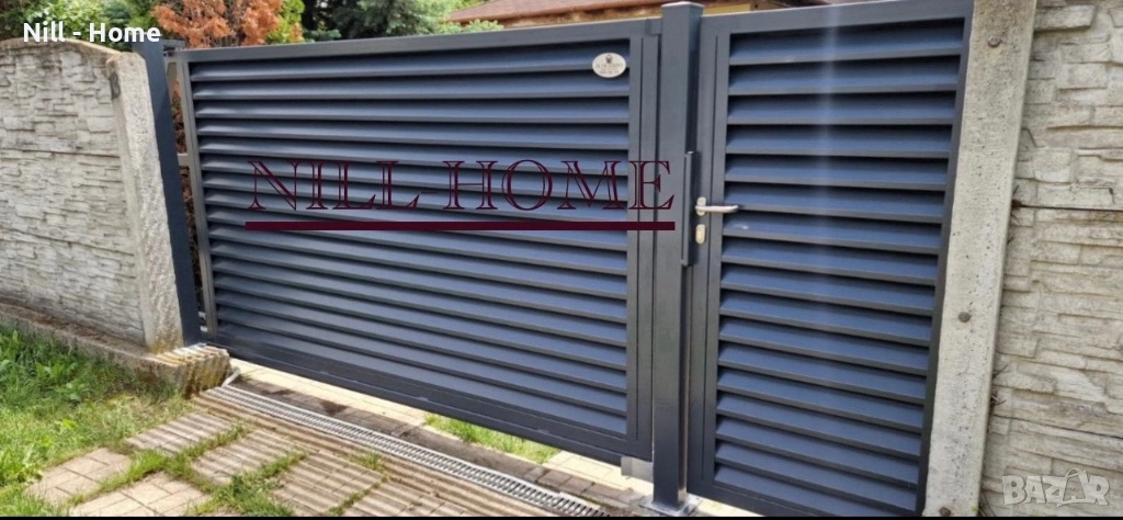 - Предлагаме и пешеходни, портални, двукрилни или плъзгащи се врати на релса или закачен тип. От същия стил с оградата.