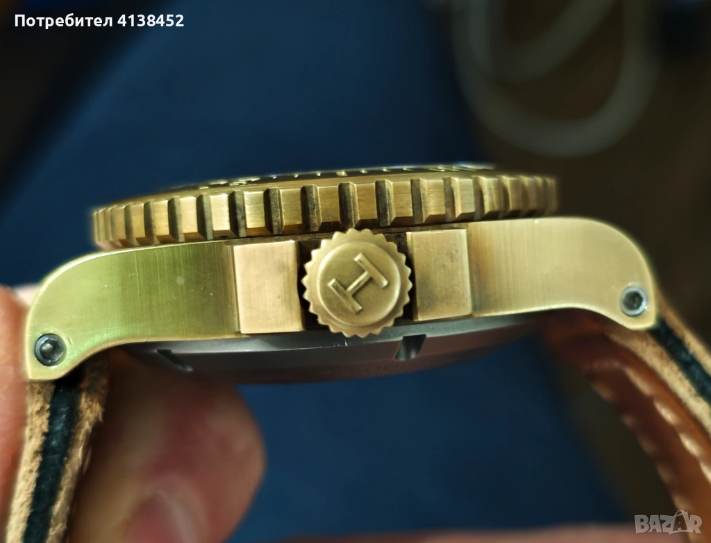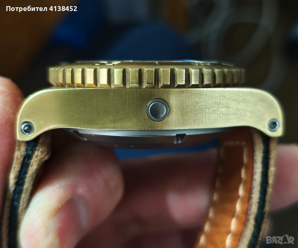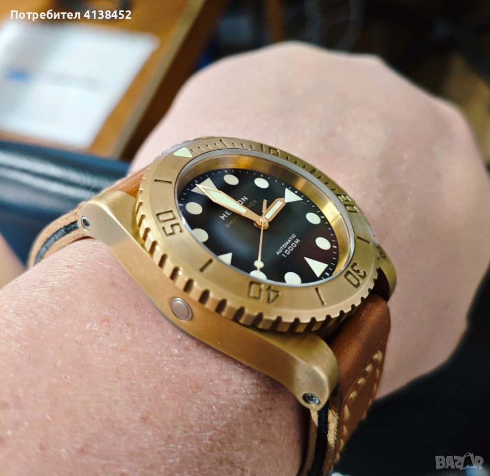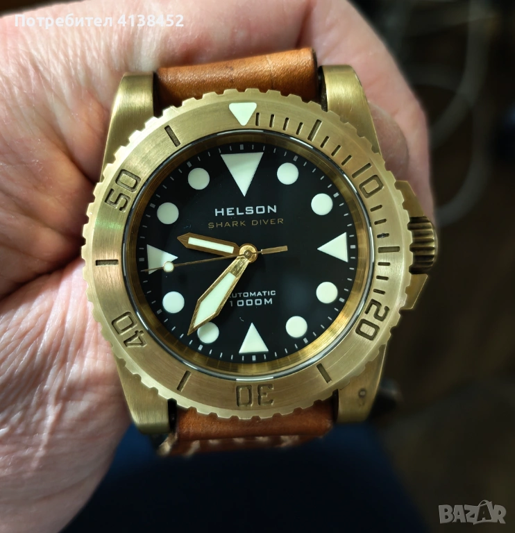Състояние отлично визуално и работно. Каса от месинг с размер 45мм без коронката сапфирено стъкло черен циферблат с луминесцентни стрелки и индекси механизъм на Сейко Nh35a водоустойчивост 1000м. В комплекта часовник и кожен транспортен Рол.