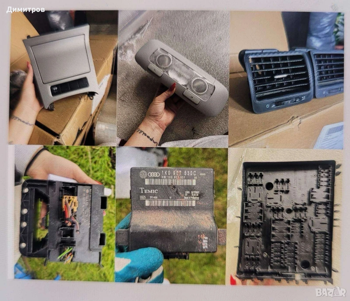 Разпродажба на части – VW Golf 5 1.9 TDI 105 к.с. (BKC) 📅 2005 г. 💰 Налични части и цени: • BCM модул – 28€ • CAN Gateway модул – 18€ • Бушонно табло – 20€ • Лостчета мигачи + чистачки – 20€ • Моторче за шибидах / люк – 25€ • Спирачна помпа – 20€ • Тръбички за спирачна помпа – 10€ • Горна помпа на съединител + педал – 25€ • Помпа за резервоар – 30€ • Брава за врата – 20€/ бр. • Комплект 4 брави – 70€ • Моторче за отваряне на капачката на резервоара – 10€ • Капачка (вратичка) за резервоар – черна – 10€ • Жабка – 20€ • Пепелник – 8€ • Сенник (шофьорски) с лека забележка– 10€ • Кора около коланите – лява / дясна – 10€/ бр. • Лайсна пасажерска – 5€ • Страничен капак за бушонно табло – 5€ • Крайни духалки – 8€ / бр. • Рамена предни чистачки –15€ • Въздуховод към въздушен филтър – 10€ • Държач за броня – 10€ •Фар за части с една липсваща букса и липсващи капачки - 10€ -Заден плафон- 8€