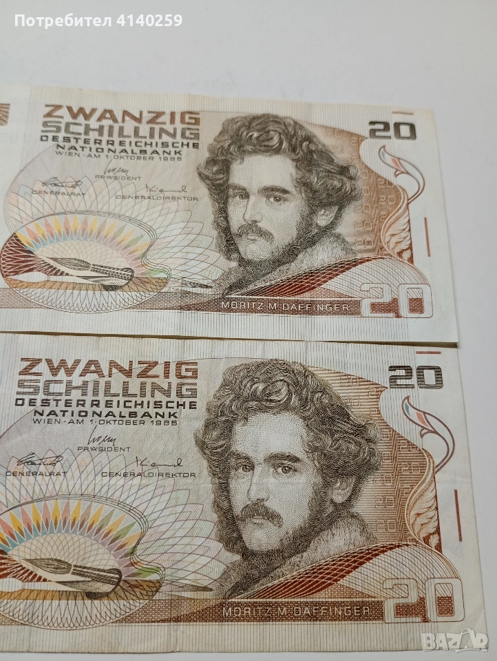 АВСТРИЯ БАНКНОТИ 20 ШИЛИНГА 1986 Г ЦЕНА ЗА 2 БРОЯ СЪСТОЯНИЕ ВИДИМО ОТ СНИМАНИТЕ БАНКНОТИ РАЗГЛЕДАЙТЕ ДРУГИТЕ МИ ОБЯВИ ДА КОМБИНИРАТЕ ДОСТАВКА ЕКОНТ ЗА ВАРНА ЛИЧНО