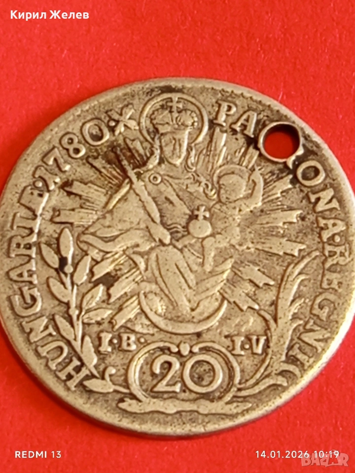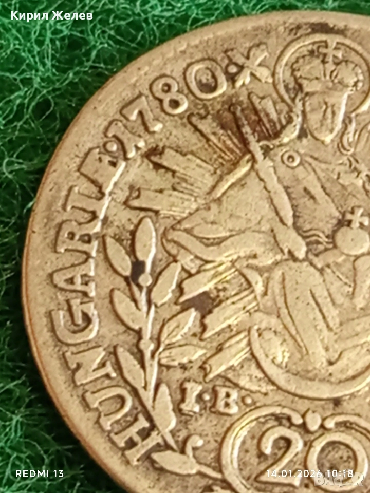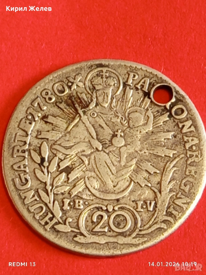 Сребърна монета 20 кройцера 1780г. Мария Терезия Унгария за КОЛЕКЦИЯ 52949