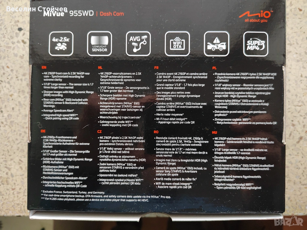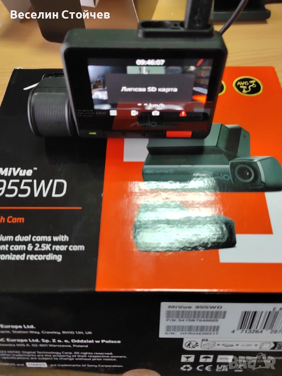 Видеорегистратор Mio MiVue 955WD, Двоен, 4K/2.5K, HDR, Wi-Fi, GPS. Най- високият клас видеорегистратор на марката. Отлично запазен.