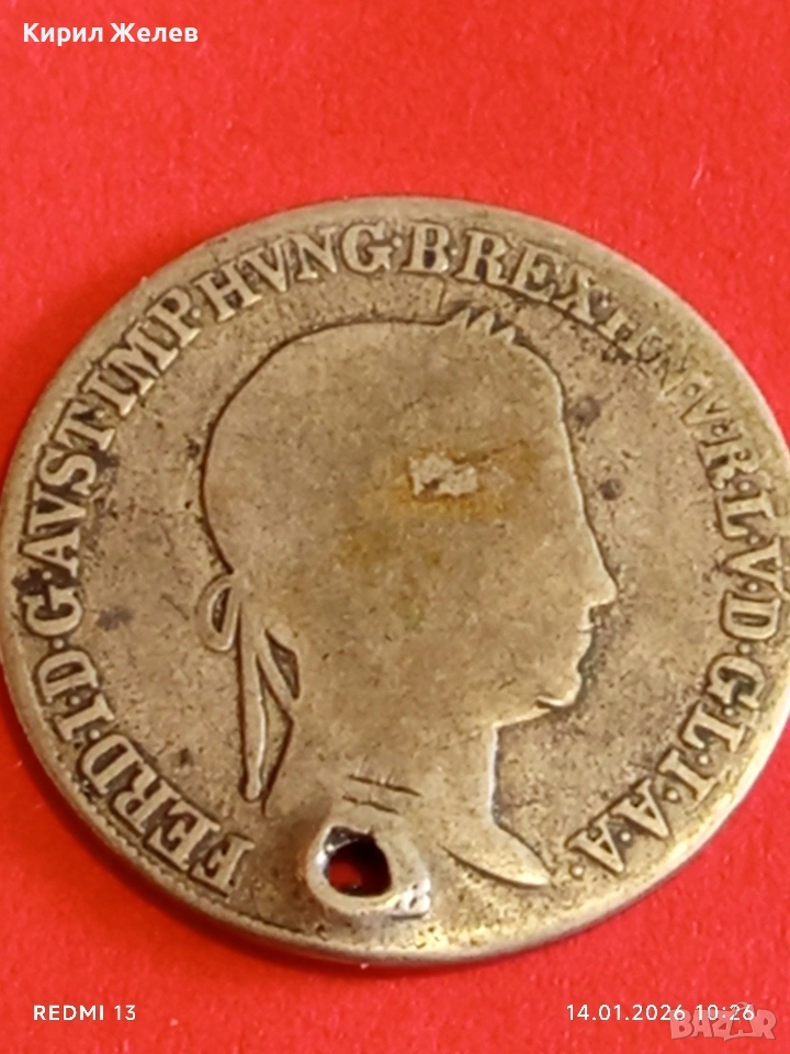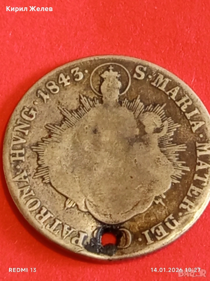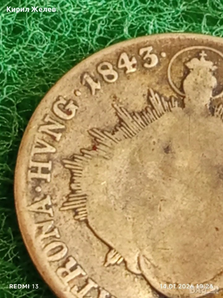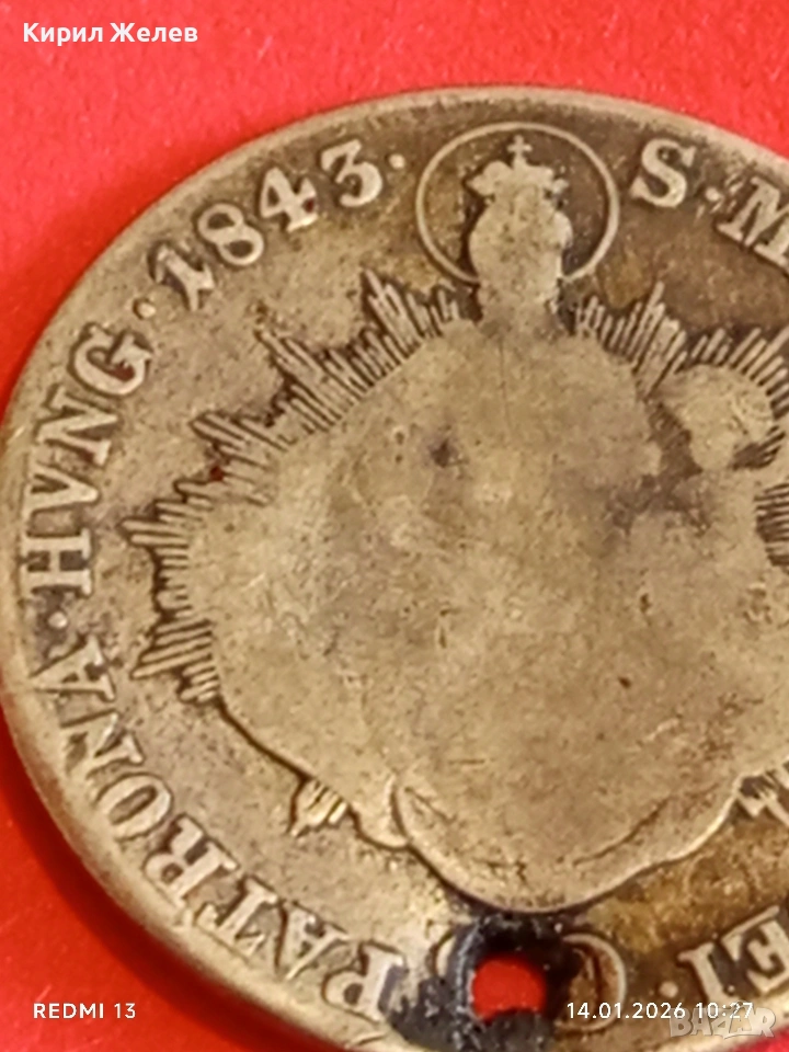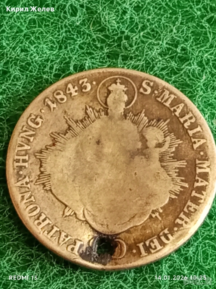 Сребърна монета 20 кройцера 1843г. Фердинанд първи Унгария за КОЛЕКЦИЯ 52962 → Обява 53093453