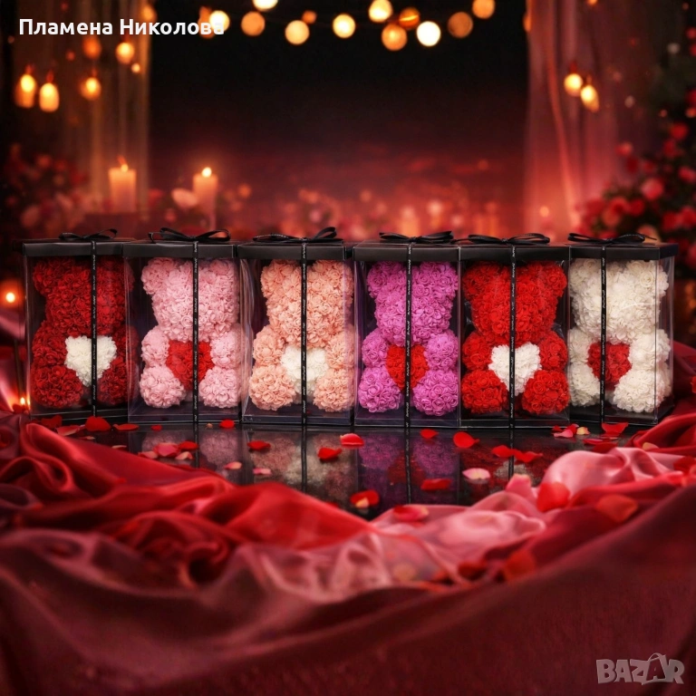 Мече от рози, с подаръчна кутия- различни размери → Обява 53093599