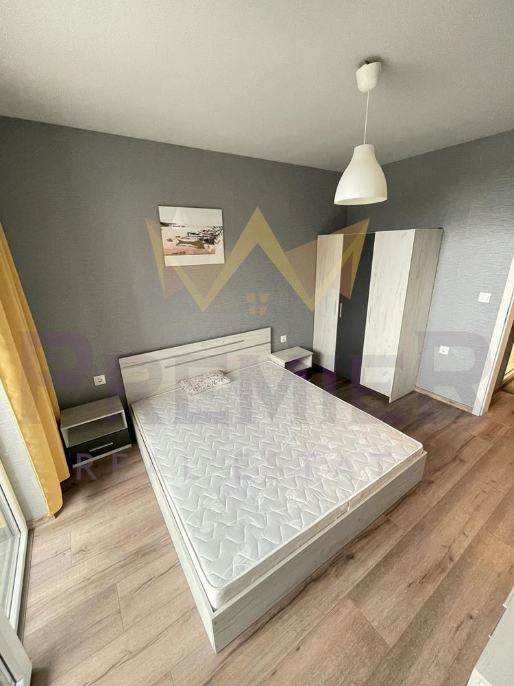 ИМОТИ ПРЕМИЕР Ви представя ДВУСТАЕН АПАРТАМЕНТ в затворен тип комплекс с басейн, перфектно озеленяване и общи части. Апартаментът се състои от входно антре, всекидневна с кухненска част, спалня, баня с тоалет и тераса. Имотът е отлично обзаведен, използвани са качествени мебели и елетроуреди. На три минути от автобусна спирка и на пет минути пеша от плажа, в тих и зелен район, с бариера и видеонаблюдение. На 7 км. от центъра на града, голям супермаркет наблизо. Код на обявата 319164