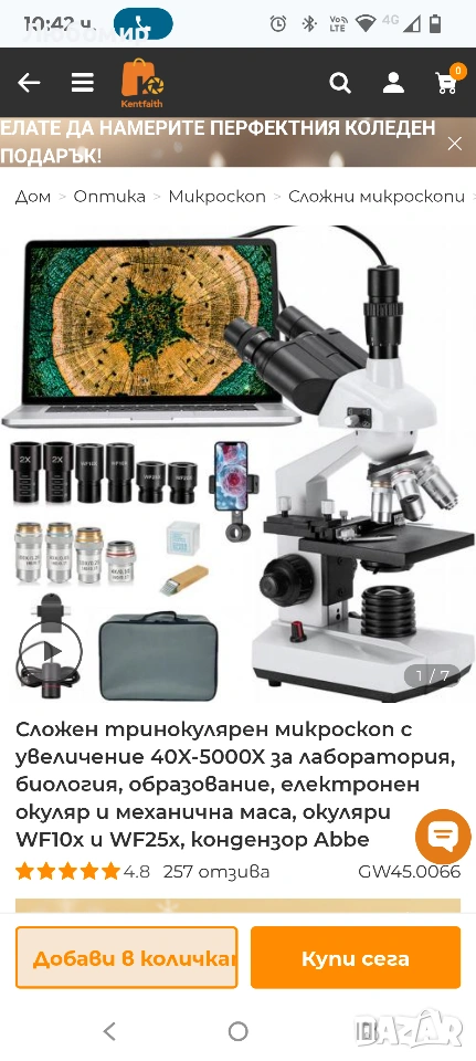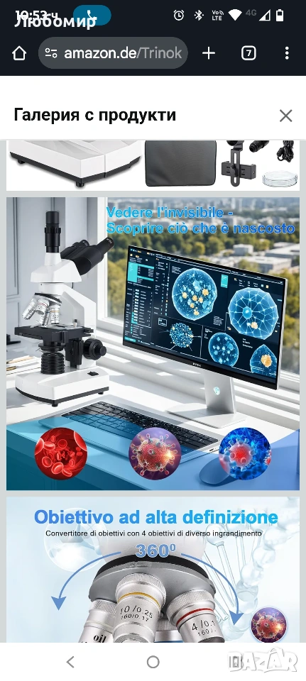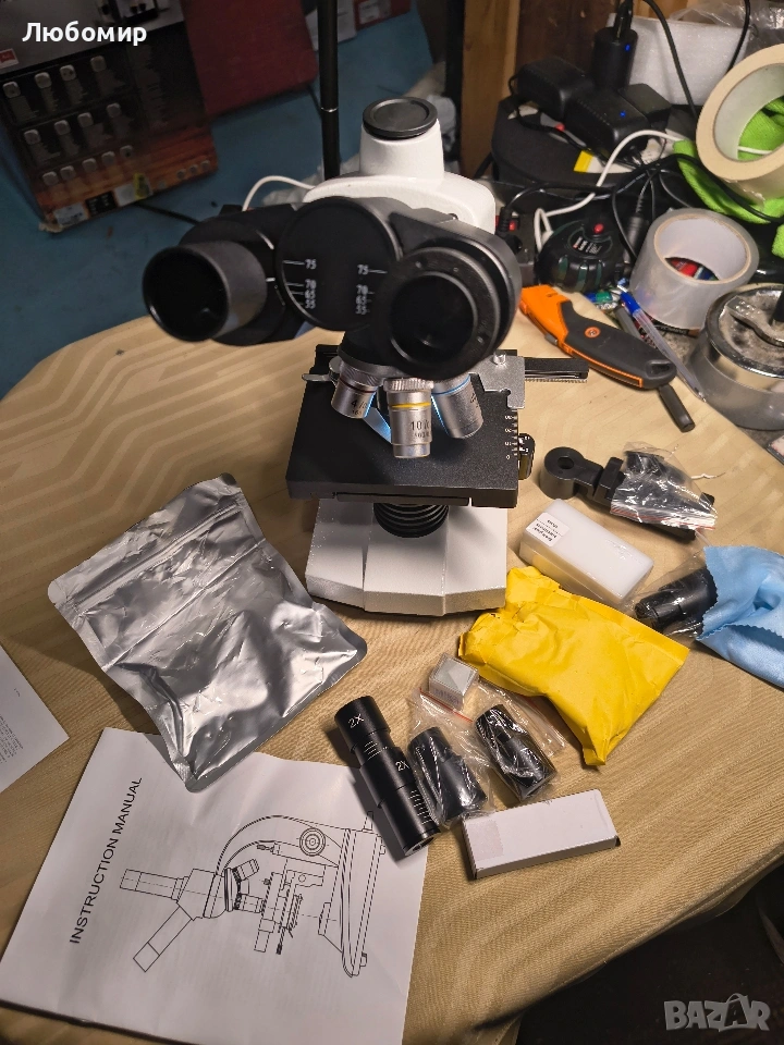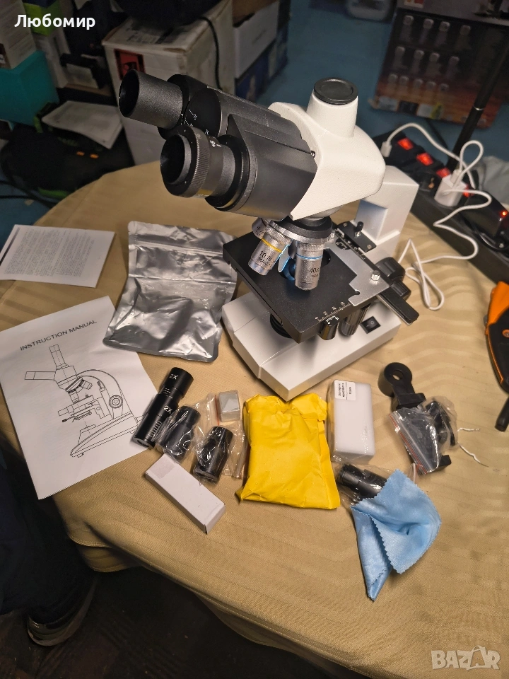 Тринокулярен оптичен микроскоп, професионален научен микроскоп с увеличение от 40x до 5000x, USB