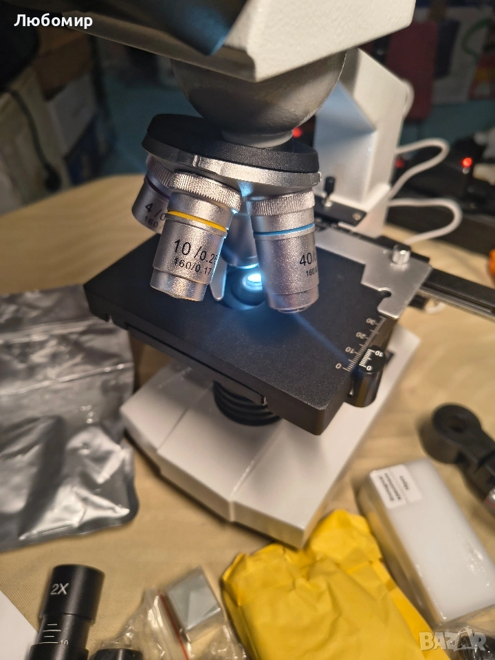 Високо увеличение: тринокулярен професионален микроскоп с четири ахроматични лещи 4x, 10x, 60x, 100x, оптичната система ще бъде комбинация от множество лещи, за да се преодолеят грешките в изображението на една леща, може да се разшири чистата площ на обекта, да се намали фазовата разлика. Ефектът на изображението е по-ясен и по-остър от конвенционалните лещи.