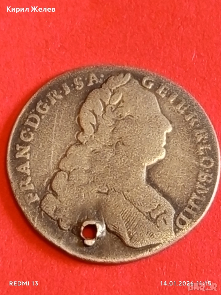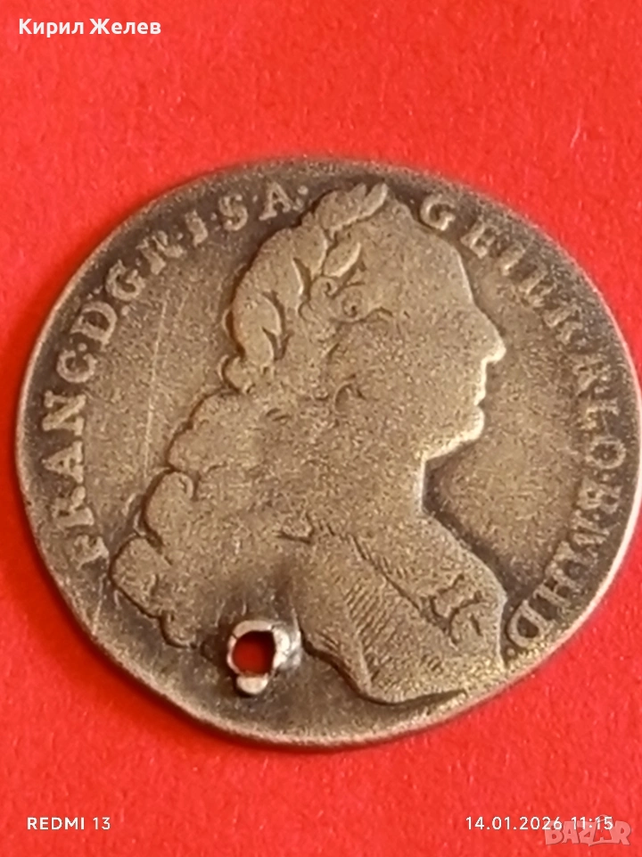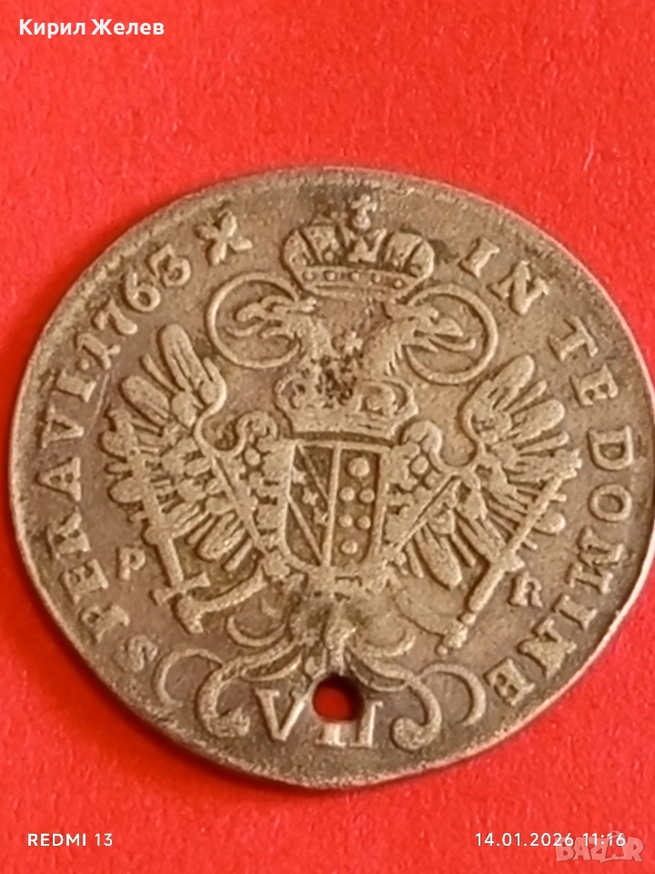 Сребърна монета 7 кройцера 1763г. Франц първи Австрия за КОЛЕКЦИЯ 52999 → Обява 53094123