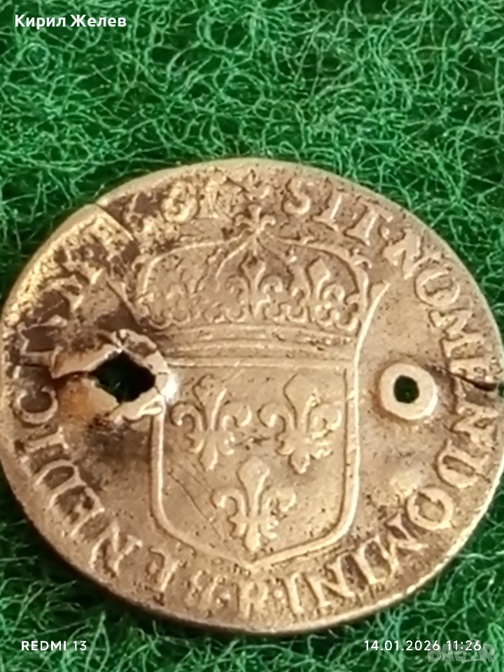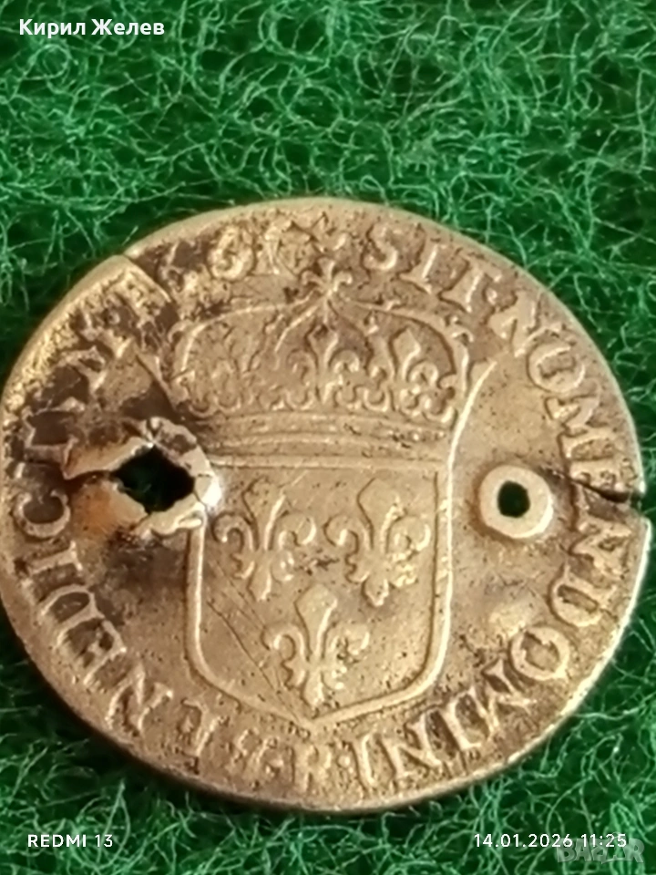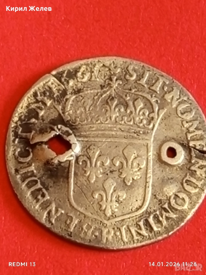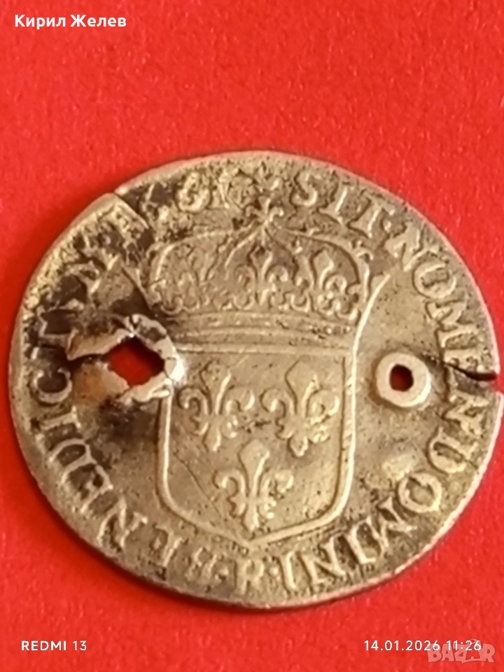 Сребърна монета 1/12 екю 1661г. Луй XIV Франция за КОЛЕКЦИЯ 52899 → Обява 53094252
