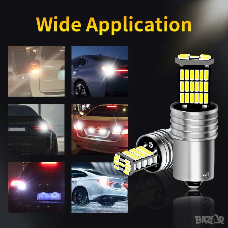 Тези LED автомобилни крушки 1157 с BAY15D цокъл са идеална LED замяна на стандартните халогенни/нажежаеми лампи в задните светлини на автомобила ви. Те използват множество 4014-SMD LED чипове, които осигуряват ярка, равномерна и високоефективна светлина с цветна температура около 6000 K (супер-бяла), която подобрява видимостта при заден ход, стоп и задни габарити и увеличава безопасността на пътя.