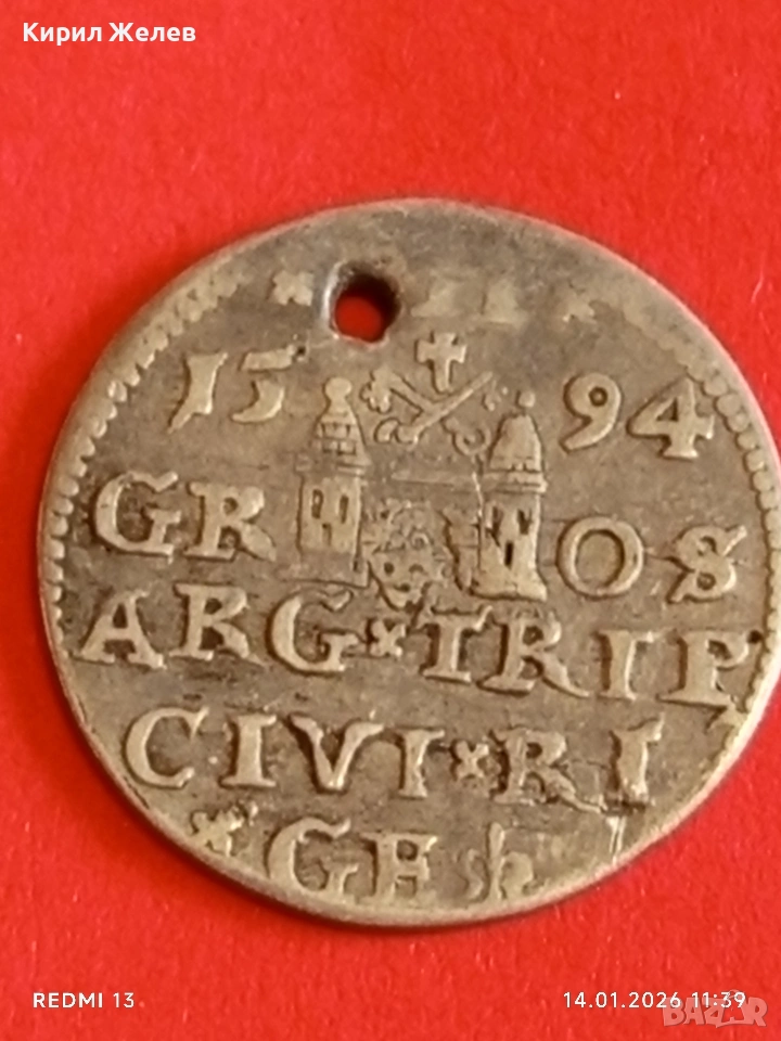 Сребърна монета 3 гроша 1594г. Сигизмунд трети Рига Ливония за КОЛЕКЦИЯ 52633