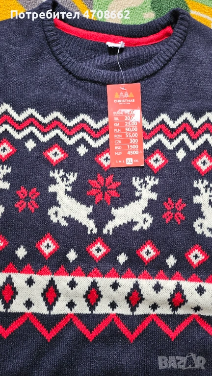 Продавам мъжки коледен пуловер. Чисто нов е с етикет. Размера е ХЛ. Изпращам по Спиди или Еконт.