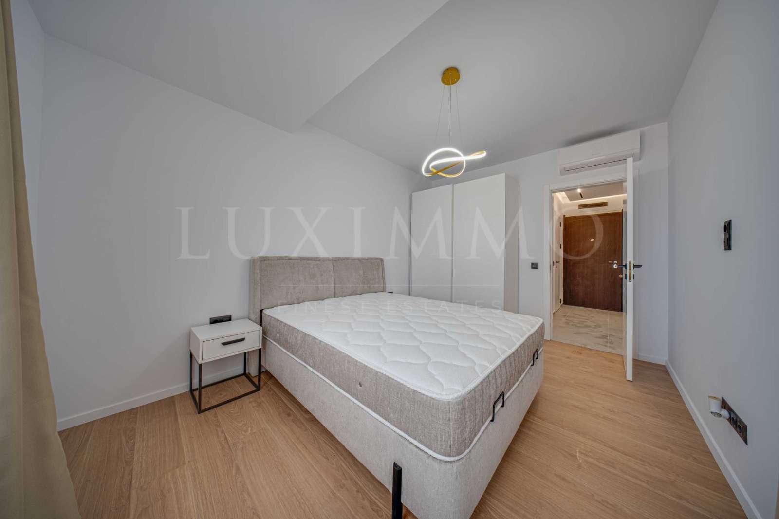 Спалнята е обзаведена с двойно легло с удобен матрак, нощни шкафчета и голям гардероб.