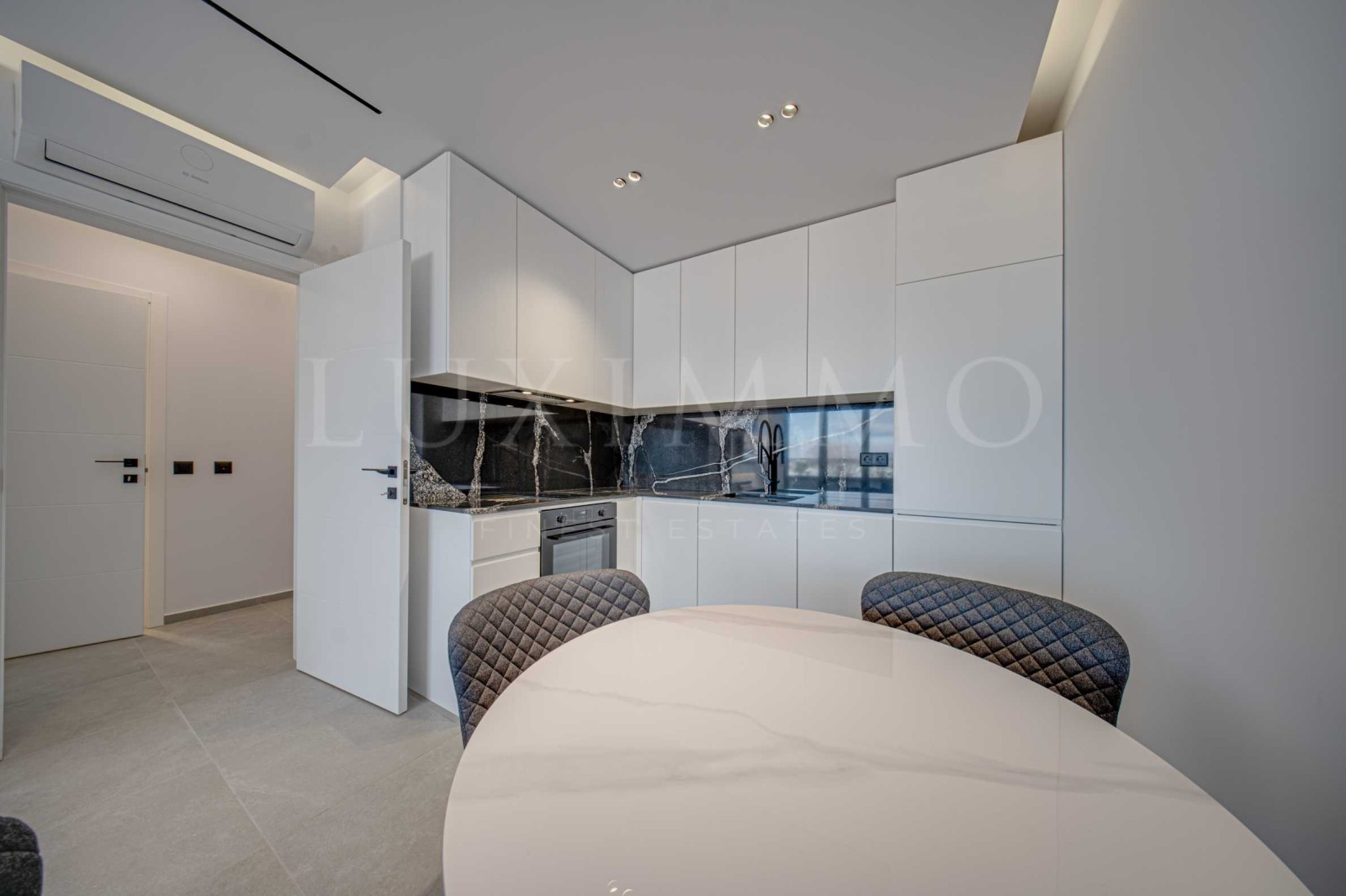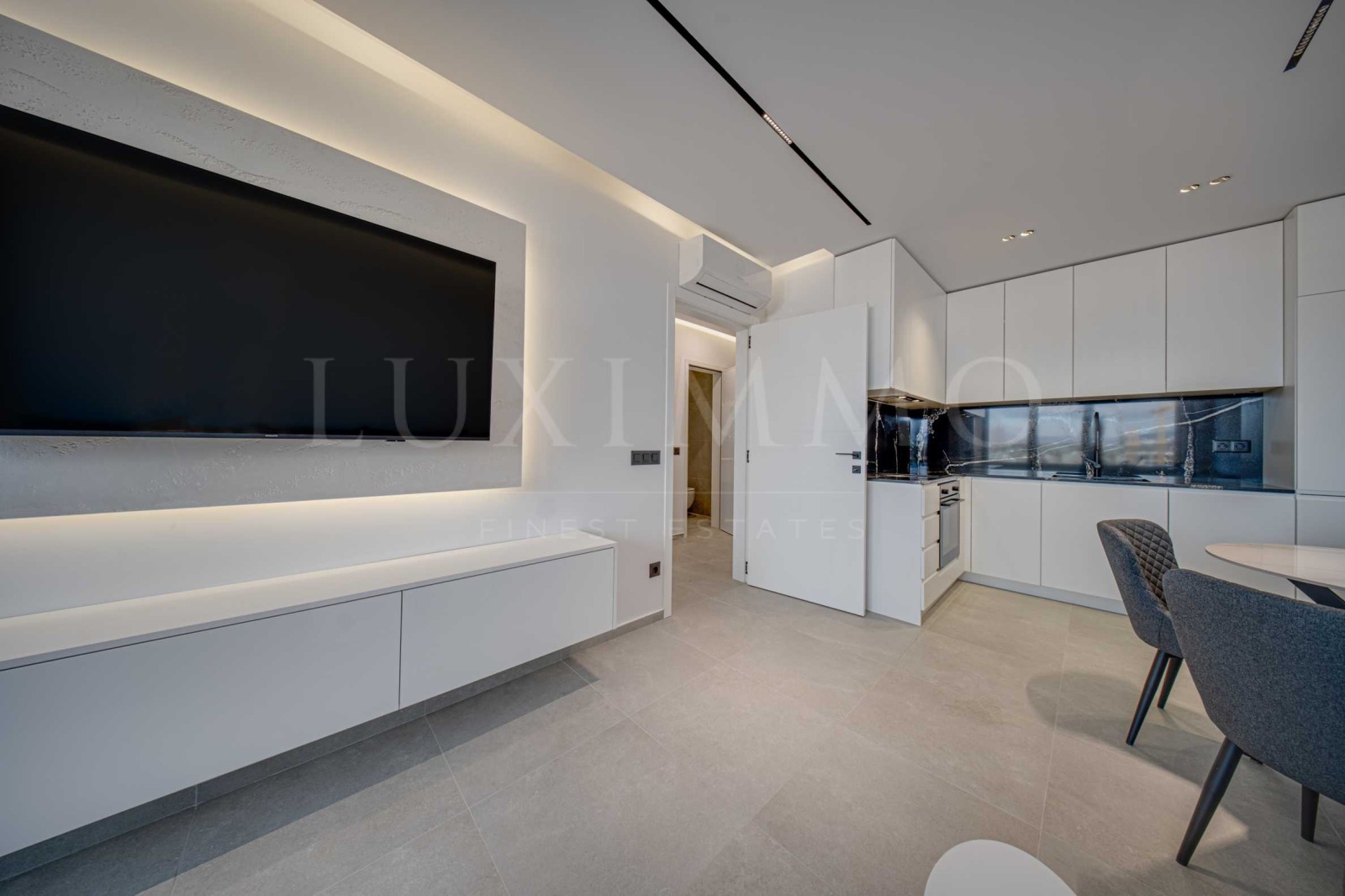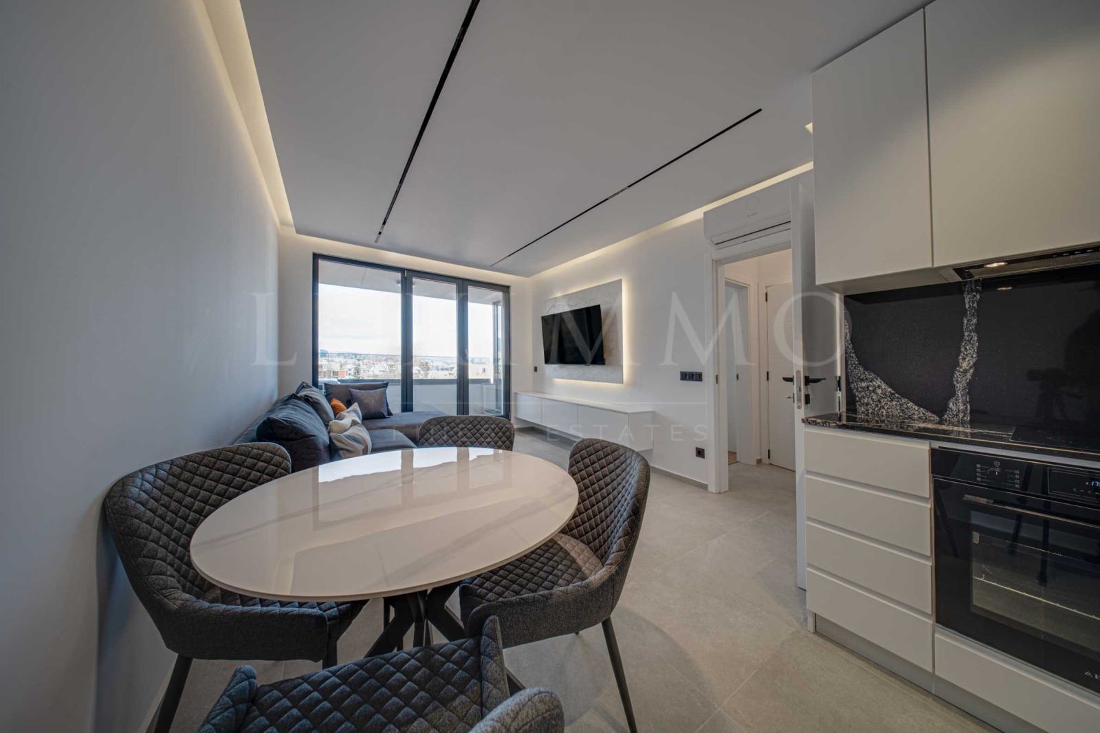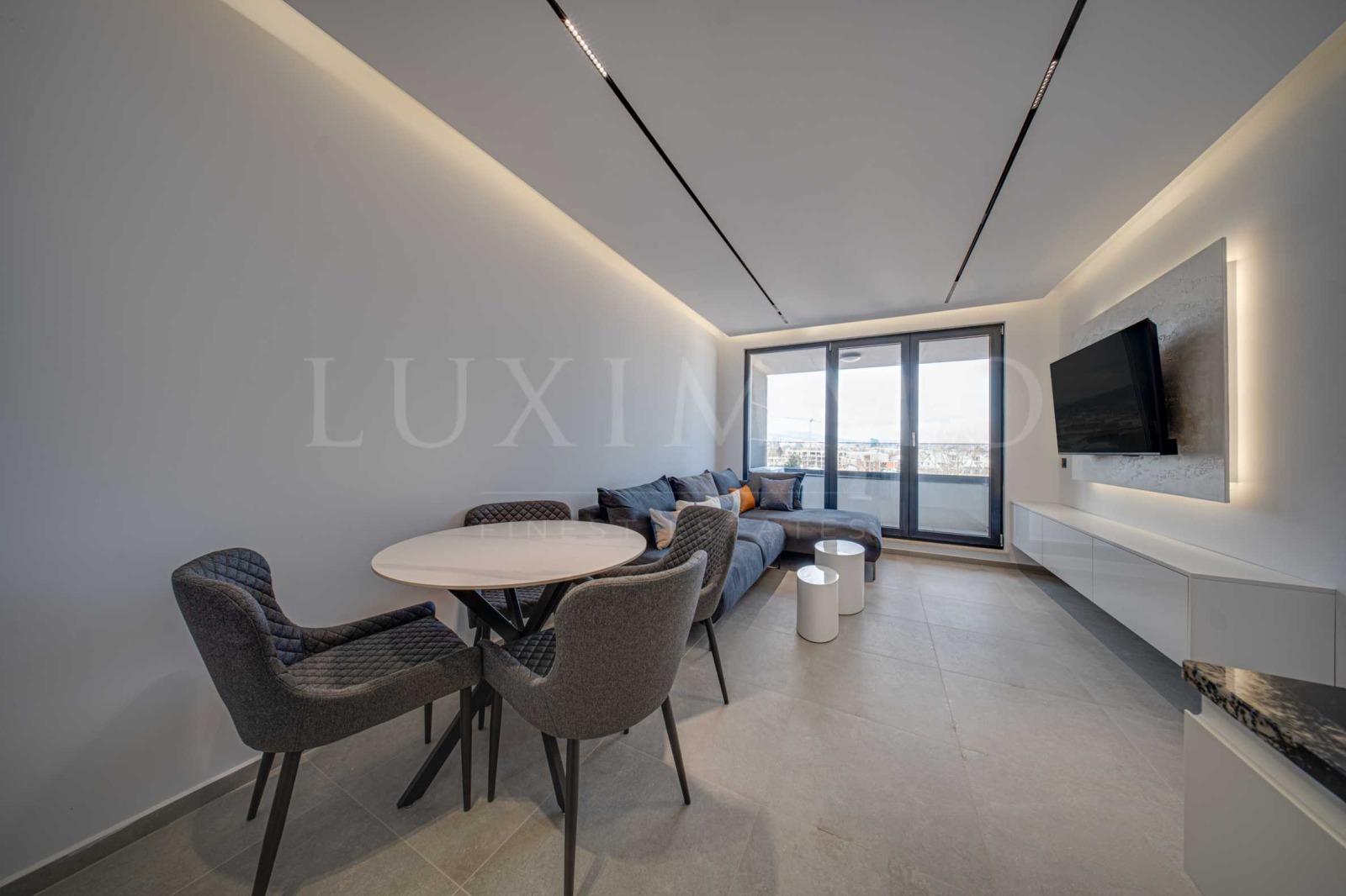 Апартаментът се предоставя напълно завършен и обзаведен с качествени материали, стилни нови мебели и последно поколение електроуреди, осигурявайки комфортно и спокойно ежедневие. Интериорът е завършен с внимание към най-малкия детайл. Помещенията са с светли и разкриват прекрасни гледки към градската среда благодарение на френските прозорци в помещенията.