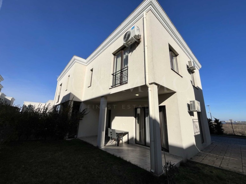 Представяме двуетажна къща под наем, разположена в престижно затворено селище на първа линия до морето, в местност Лахана, която съчетава тишина и уединение с удобството на бърз достъп до кв. 'Сарафово', Поморие и Бургас.