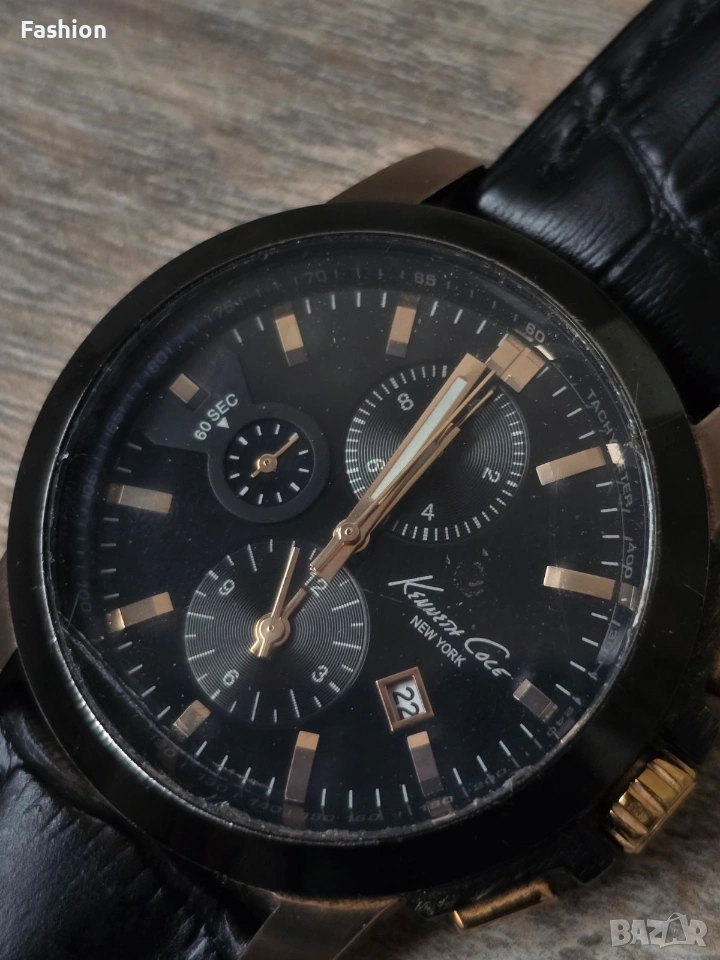 Оригинален мъжки часовник Kenneth Cole New York KC1816. С кутия. Сменена батерия и чисто нова каишка. Цена 60€. Състояние-видимо от снимките. Изпращам с преглед и тест преди заплащане