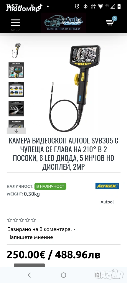 AUTOOL Двупосочна 210° ендоскопска камера със светлина, 0.21-инчова бороскопска инспекционна