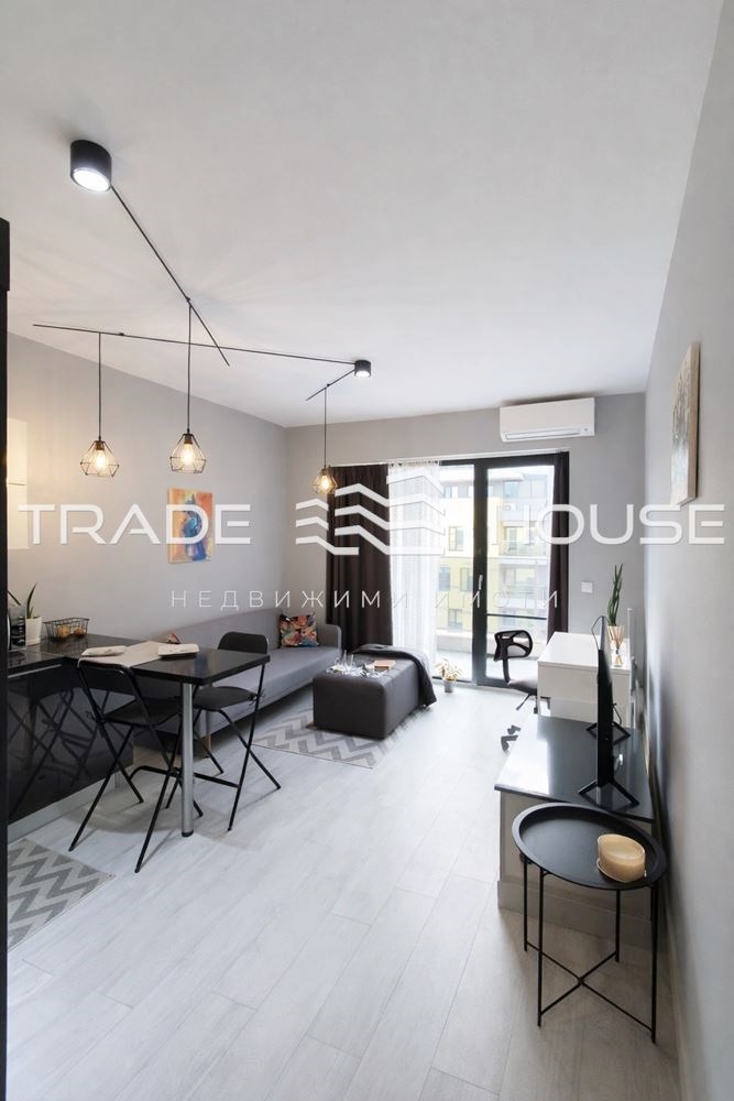 Напълно обзаведен и оборудван с качествени мебели и уреди климатици Daikin (2 бр.), пералня със сушилня, съдомиялна, фурна, микровълнова, висок хладилник с фризер, TV Samsung. Диван с функция сън, обширни гардероби.