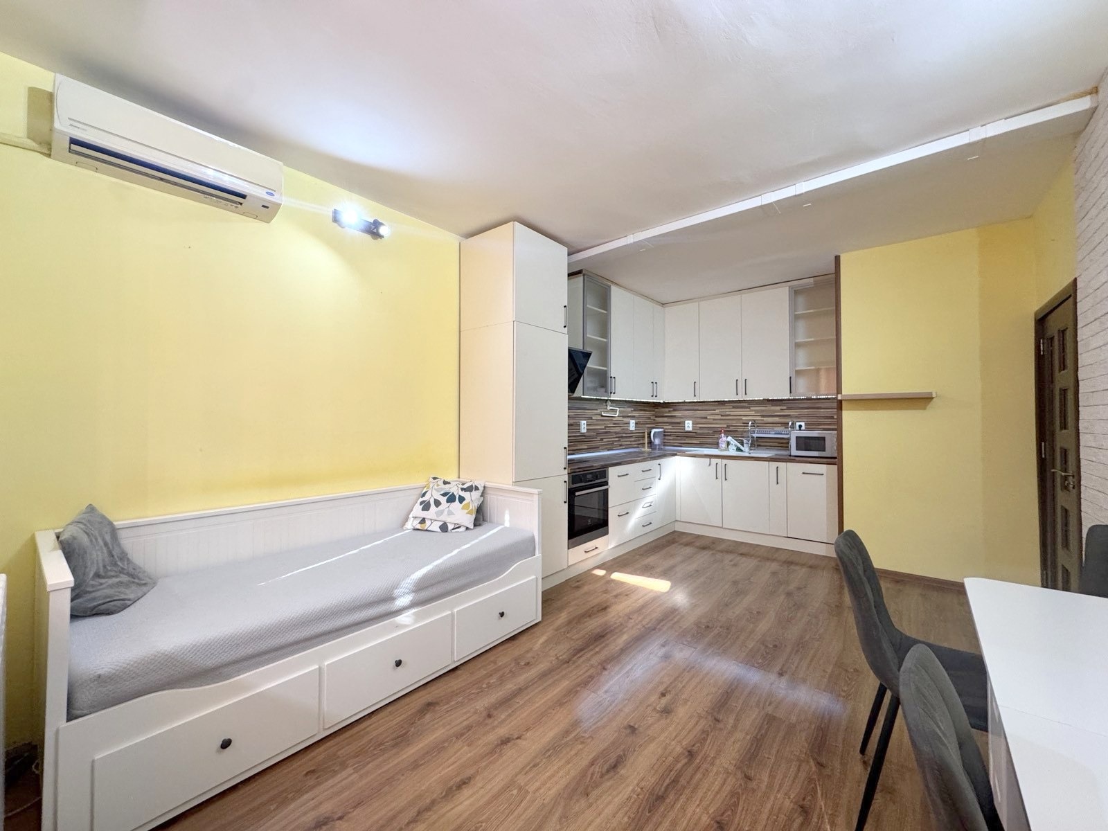 Green home oтдава под наем напълно обзаведен тристаен апартамент, подходящ за младо семейство. Жилището е светло, просторно и функционално разпределено, създаващо уют и комфорт за ежедневен живот.