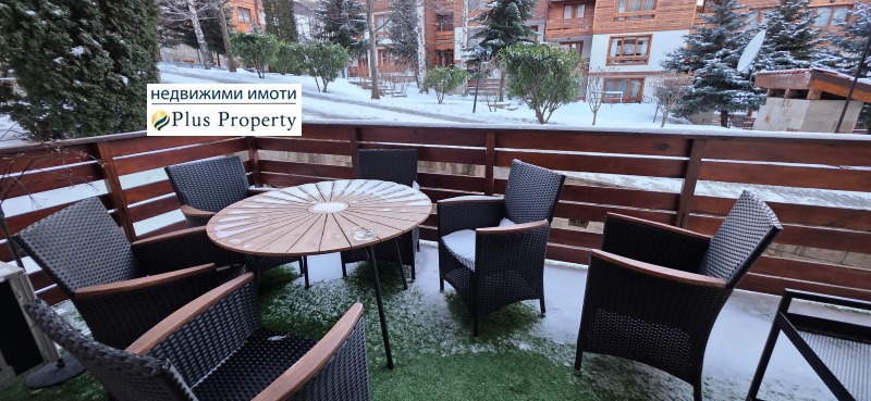 Апартаментът се намира на партерния етаж и предлага голяма тераса с люлка и маса за хранене. Имотът включва паркомясто в гаража и дял от 28,56 м² в общите части, включително обща стая с камина, кът за сядане, билярдна маса, самостоятелна сауна и душове.